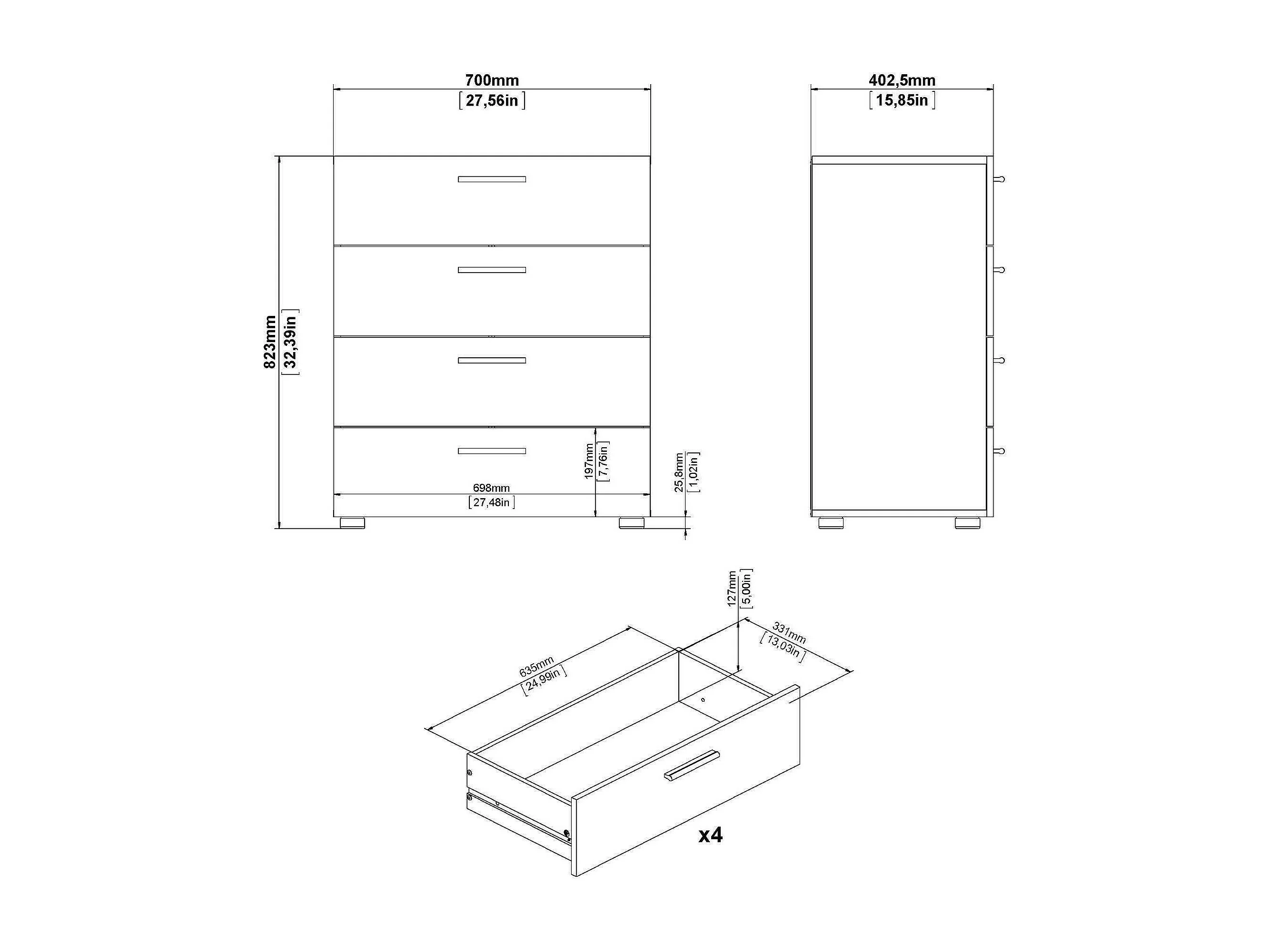 Commode Alert, Commode polyvalente, Commode de chambre, Meuble avec tiroirs, 72x30 h68 cm, Noir