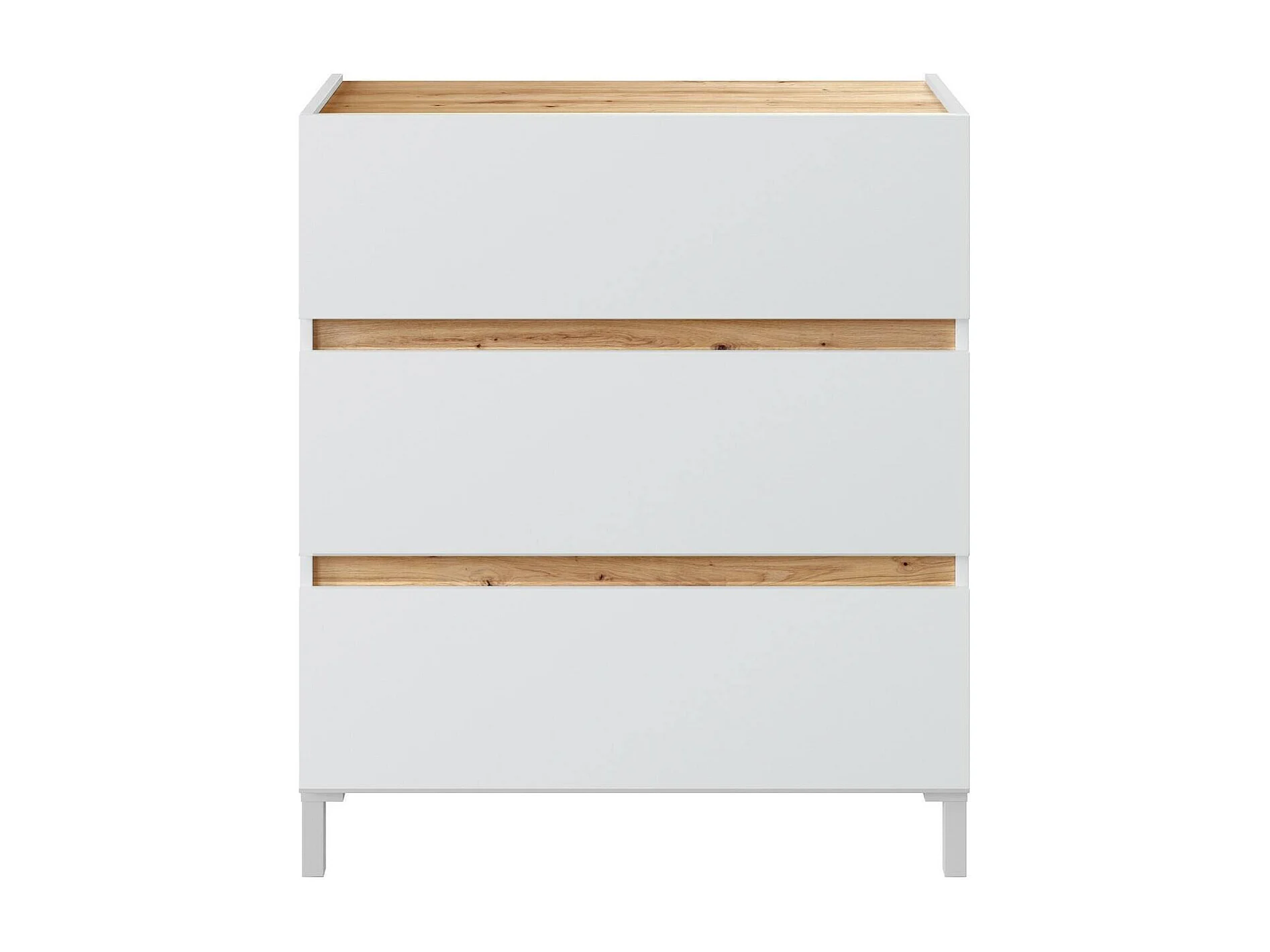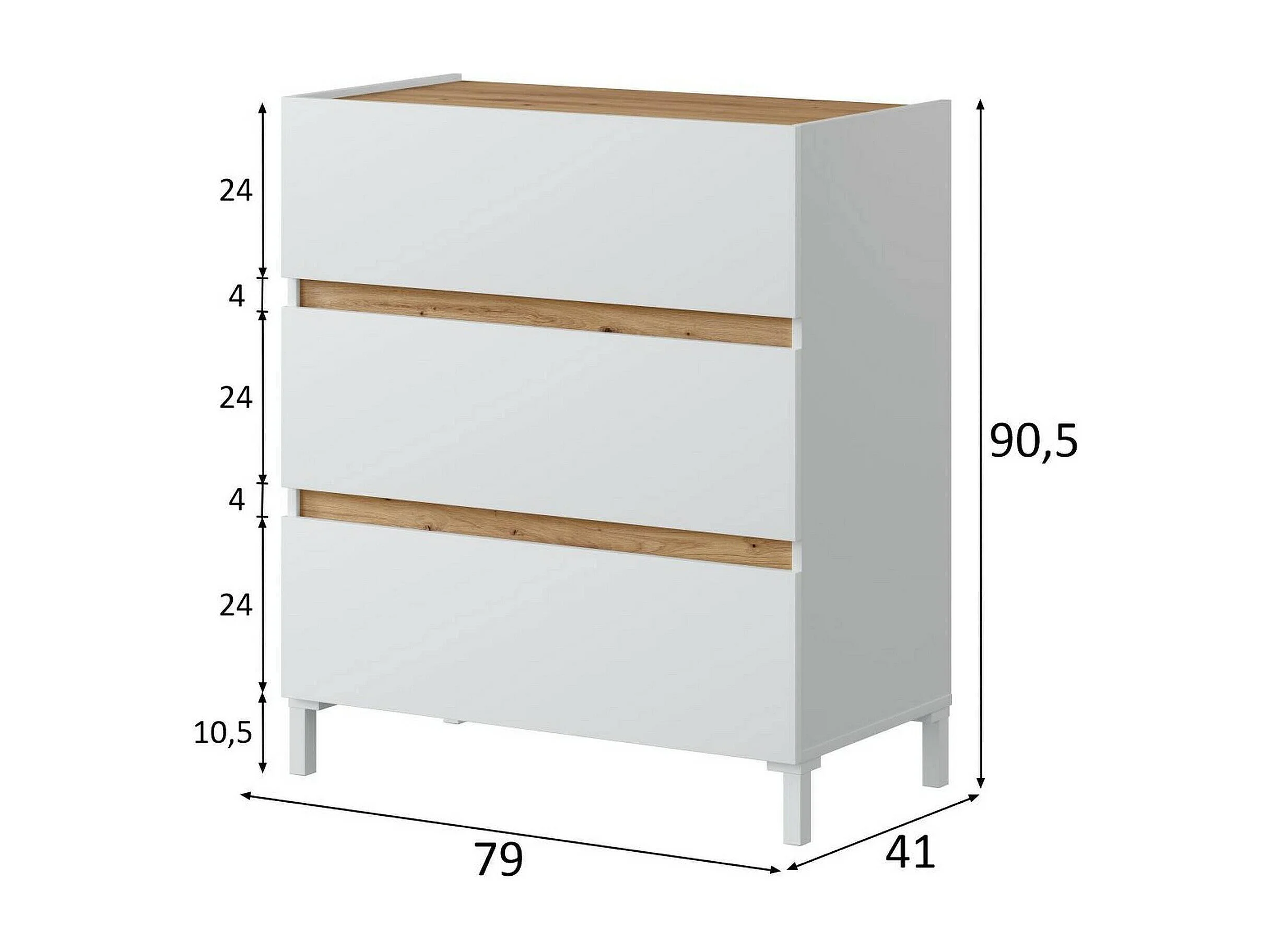 Commode Dzenon, Commode polyvalente, Commode de chambre, Meuble avec tiroirs, 79x41 h91 cm, Blanc et n?uds de chêne clair