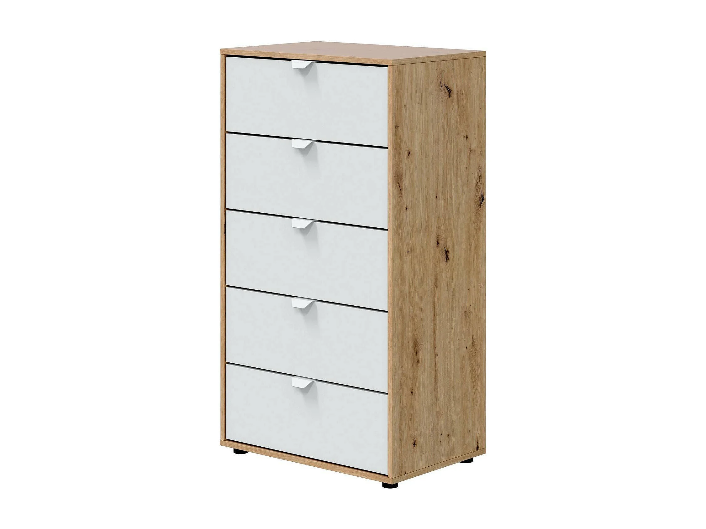 Commode Dzill, Commode polyvalente, Commode de chambre, Meuble avec tiroirs, 60x40 h109 cm, Blanc et n?uds de chêne clair