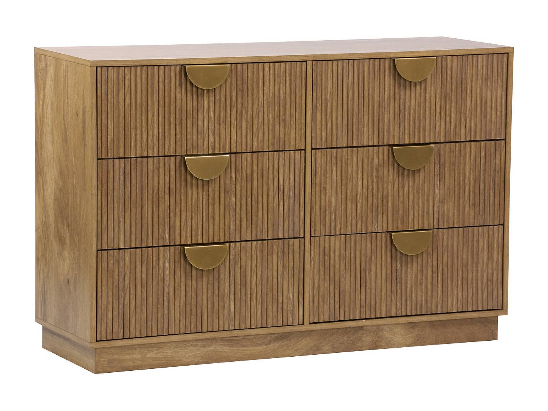 Commode effet bois de manguier rainuré 6 tiroirs - 120 x 39 x 79 cm - Celian