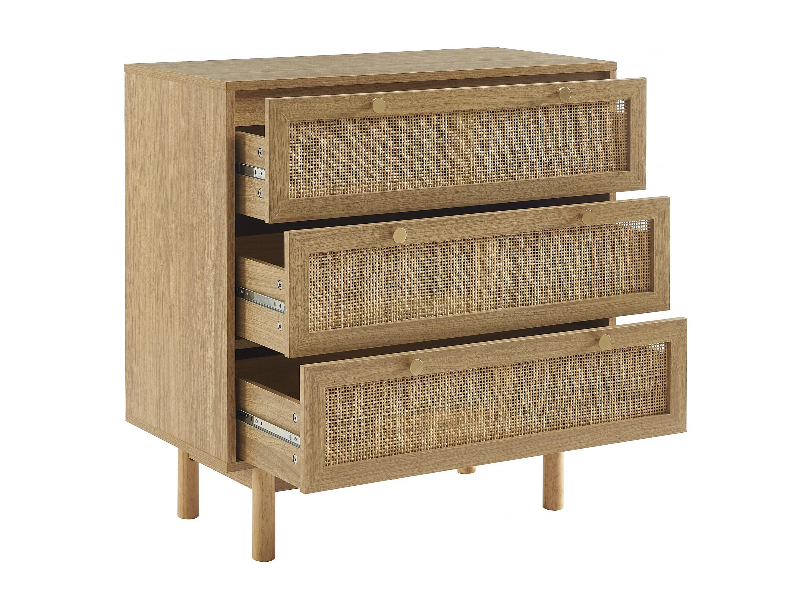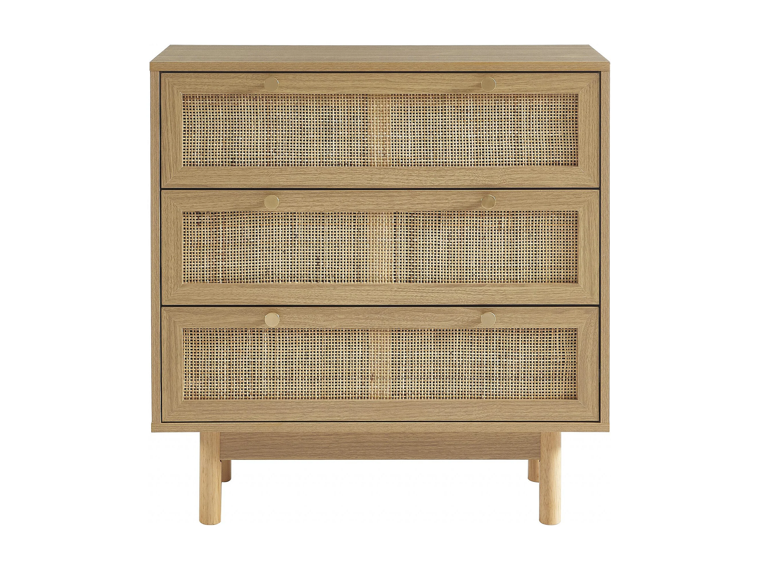 Commode effet chêne et cannage rotin 3 tiroirs ONYX