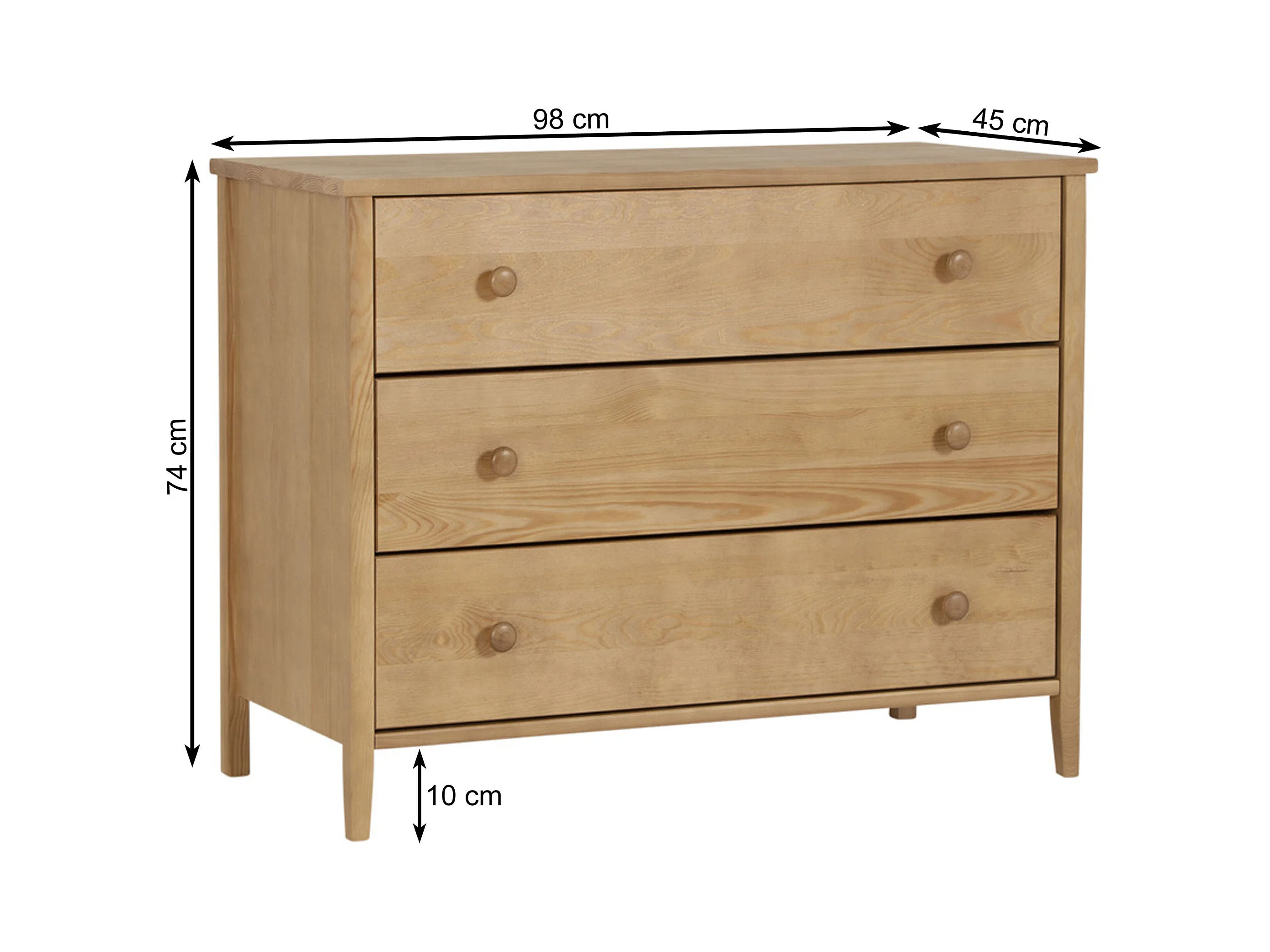 Commode en bois 74 x 98 cm Colorado I, 3 tiroirs, couleur chêne