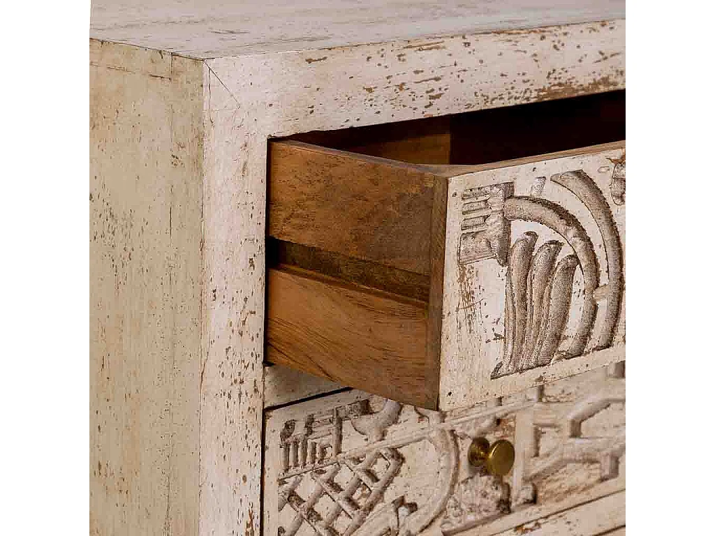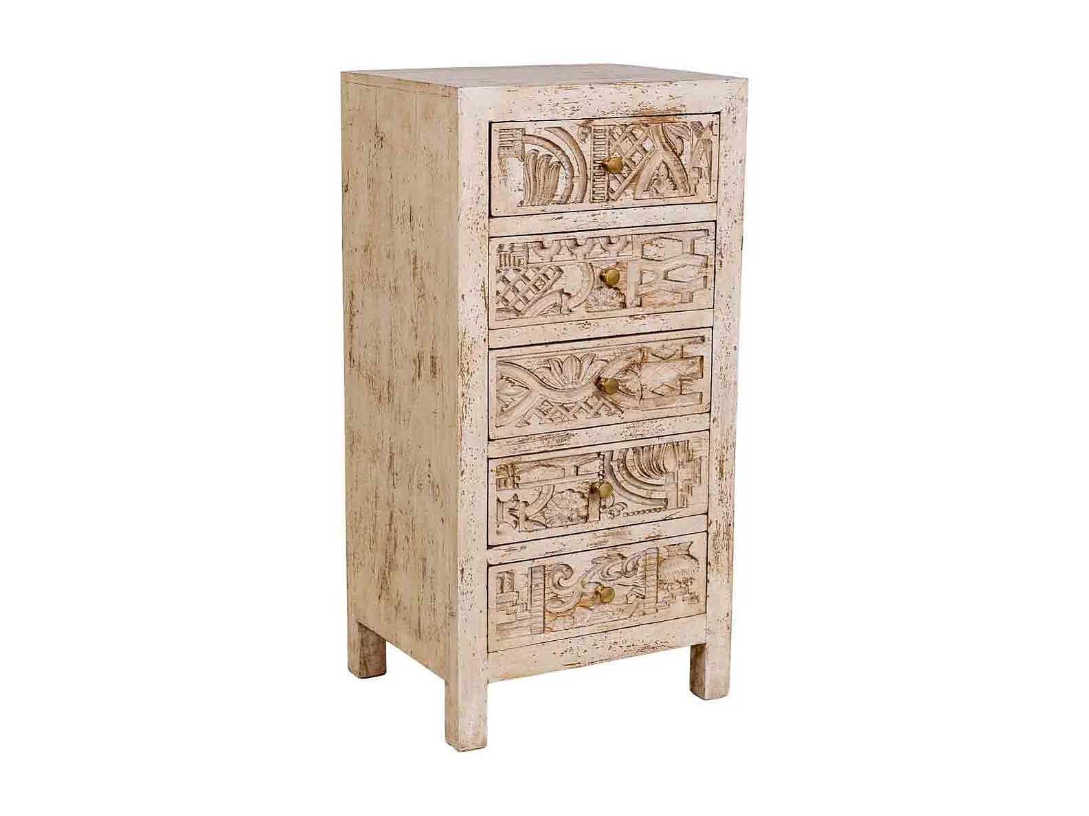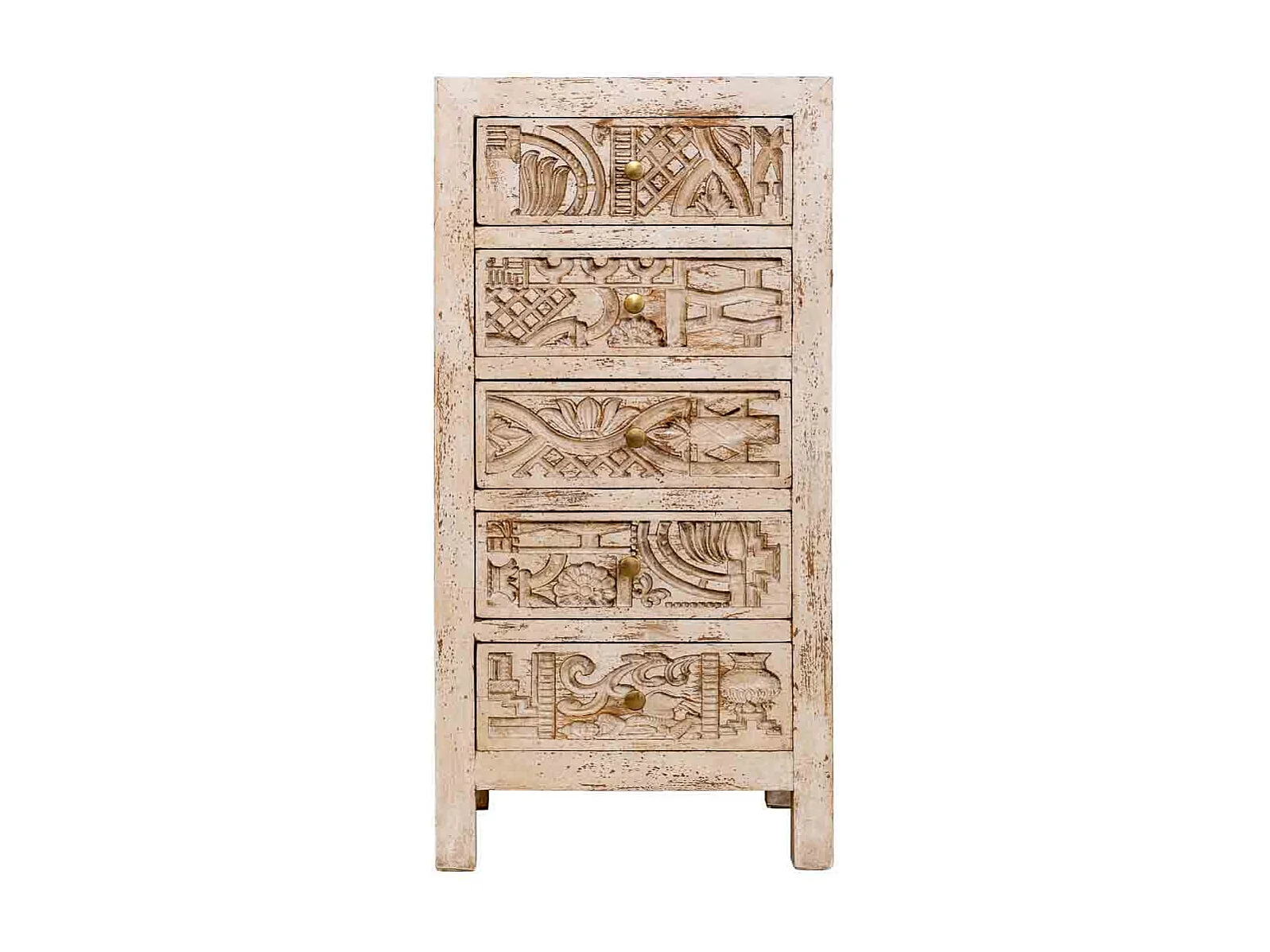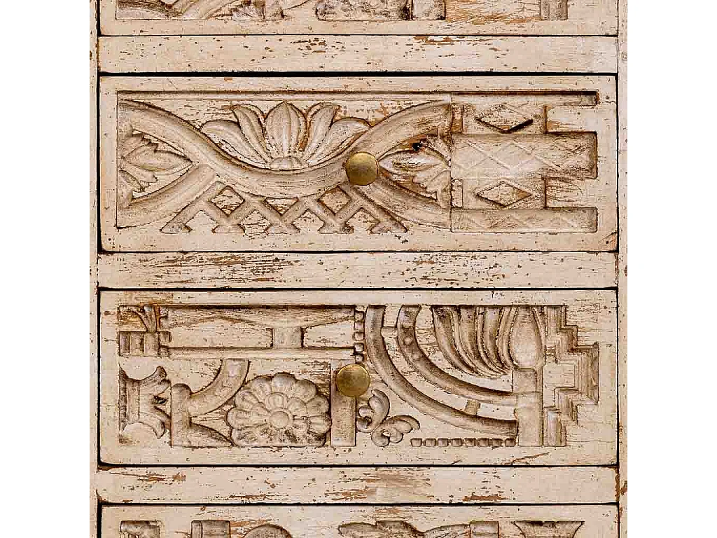 Commode en bois beige sculptée à la main, 45 x 40 x 100 cm (h)