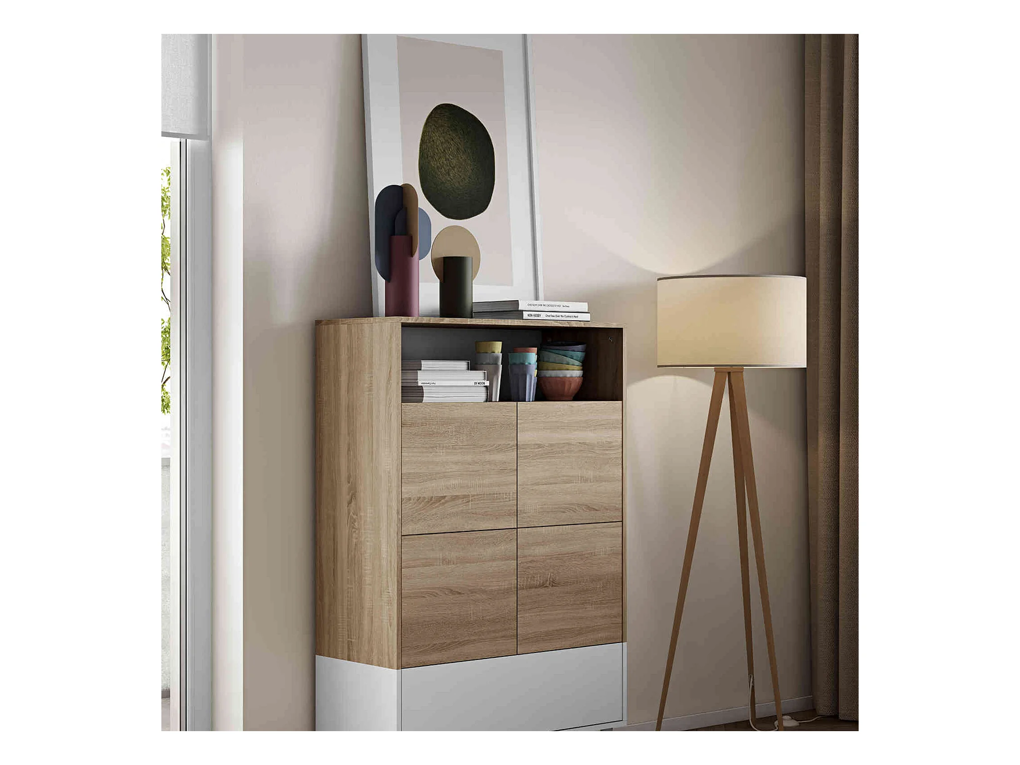 Commode en bois blanc avec placard et niche de rangement - CO6001