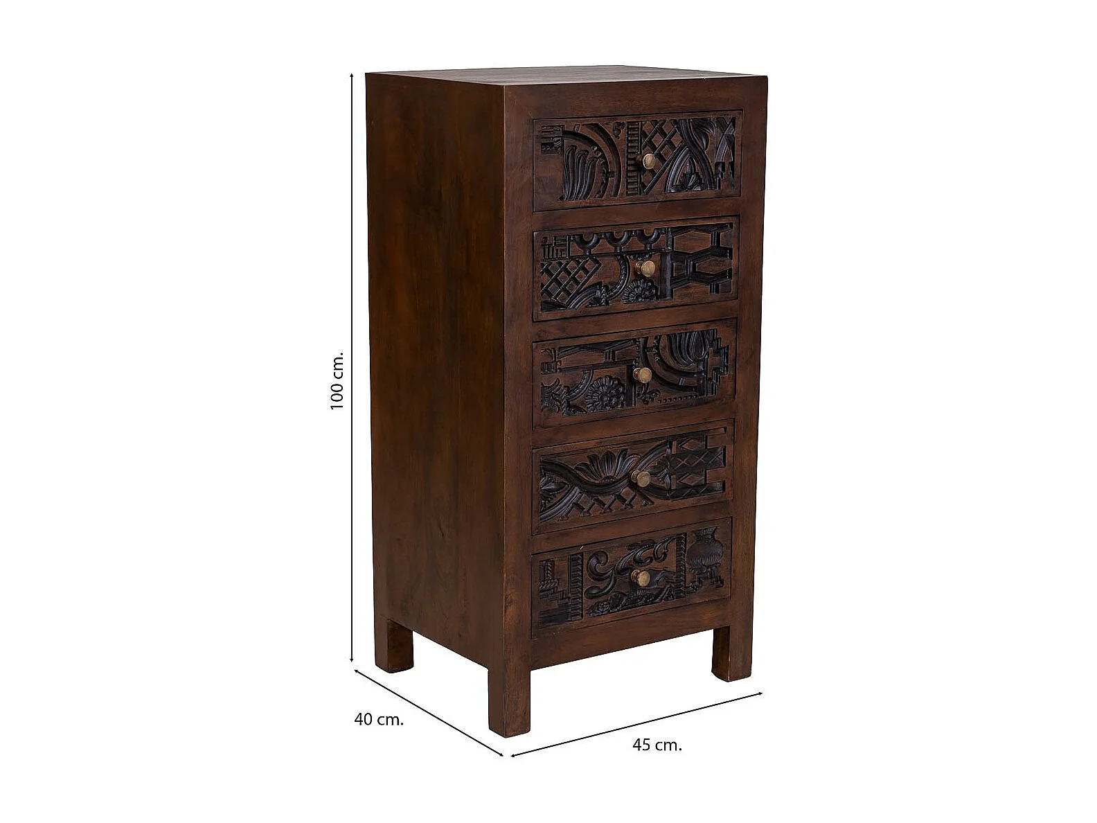 Commode en bois brun sculptée à la main, 45 x 40 x 100 cm (h)