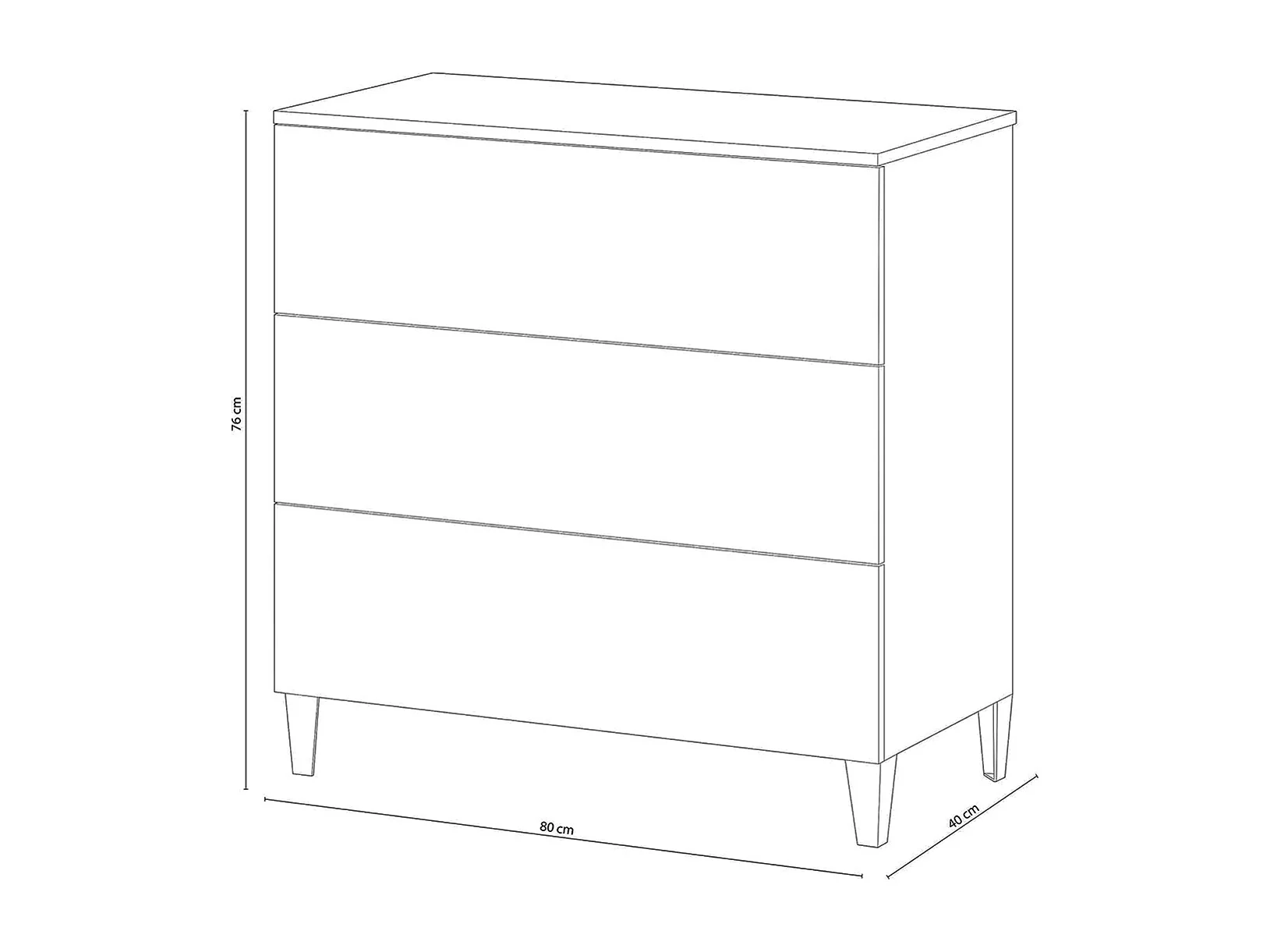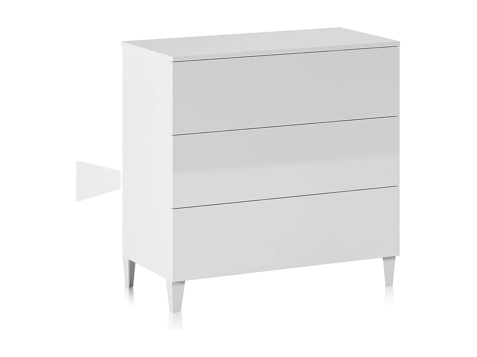 Commode en bois couleur blanc brillant avec 3 tiroirs - Longueur 80 x Hauteur 76 x Profondeur 40 cm