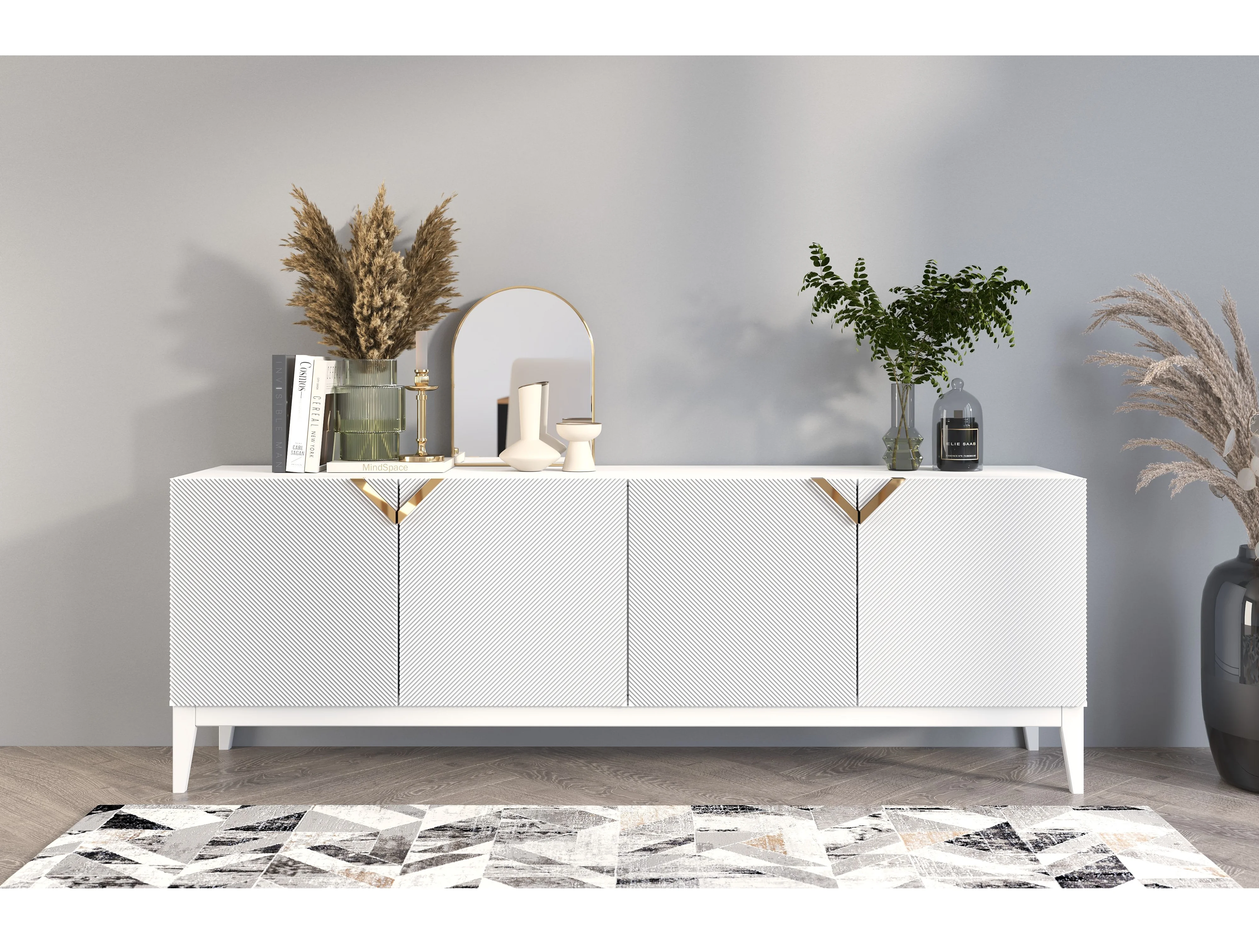 Buffet en bois DEMI LONG / blanche + pieds blancs / 201,5 cm