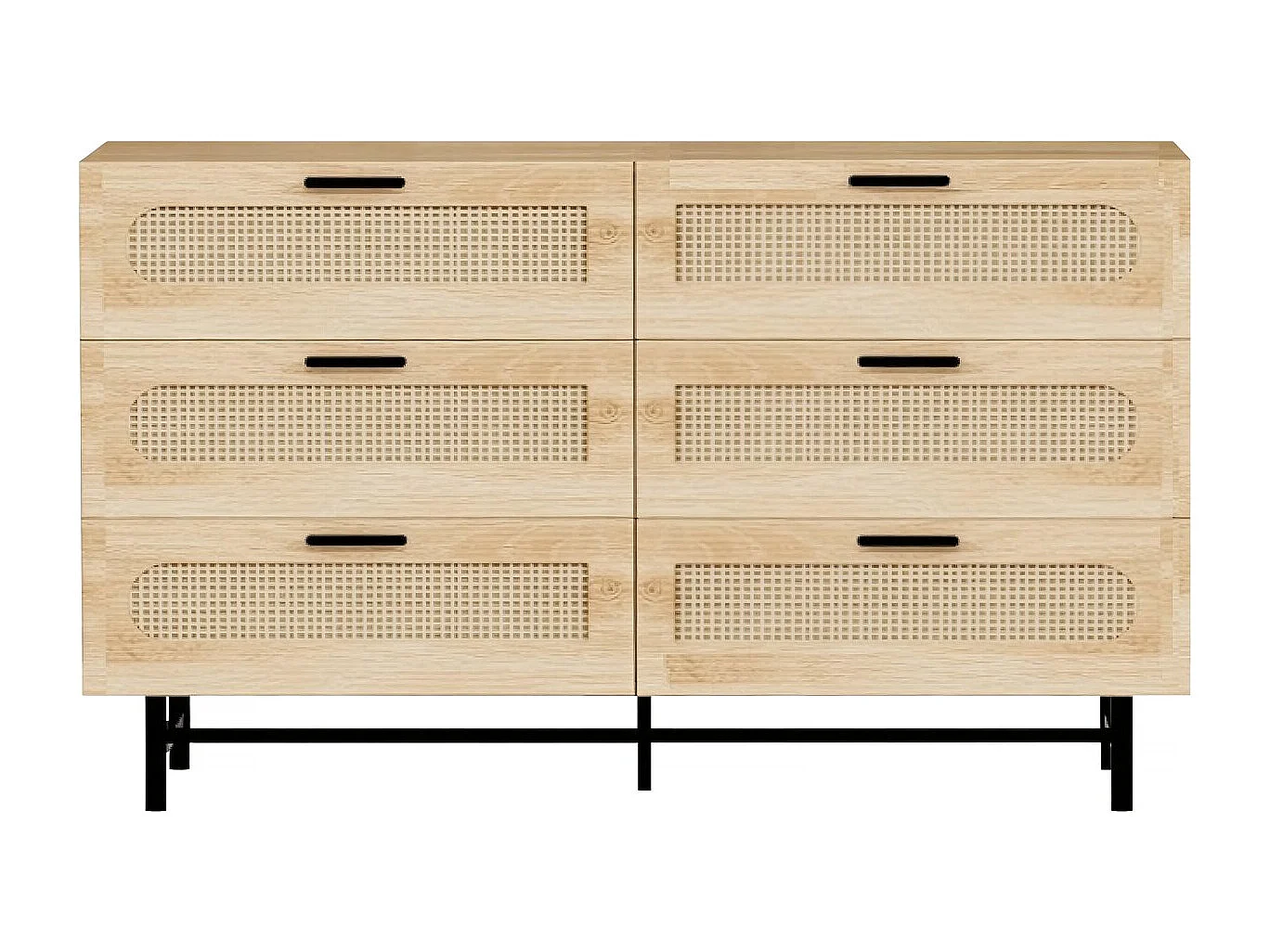 Commode en bois et cannage "Harrison" - 120 x 40 x 75 cm - Beige