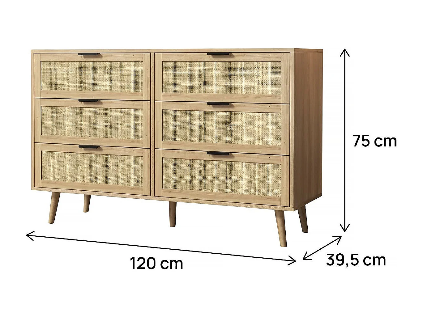 Commode en bois et cannage "Preston" - 120 x 40 x 75 cm - Beige
