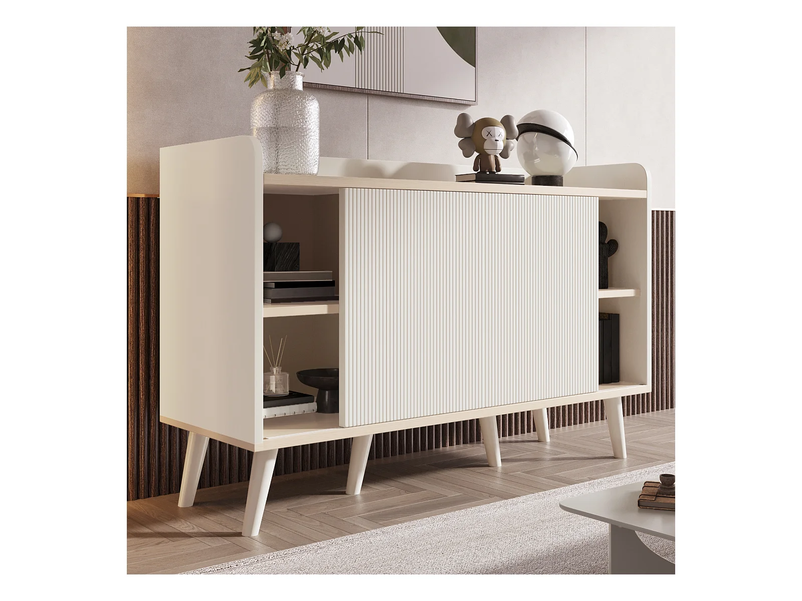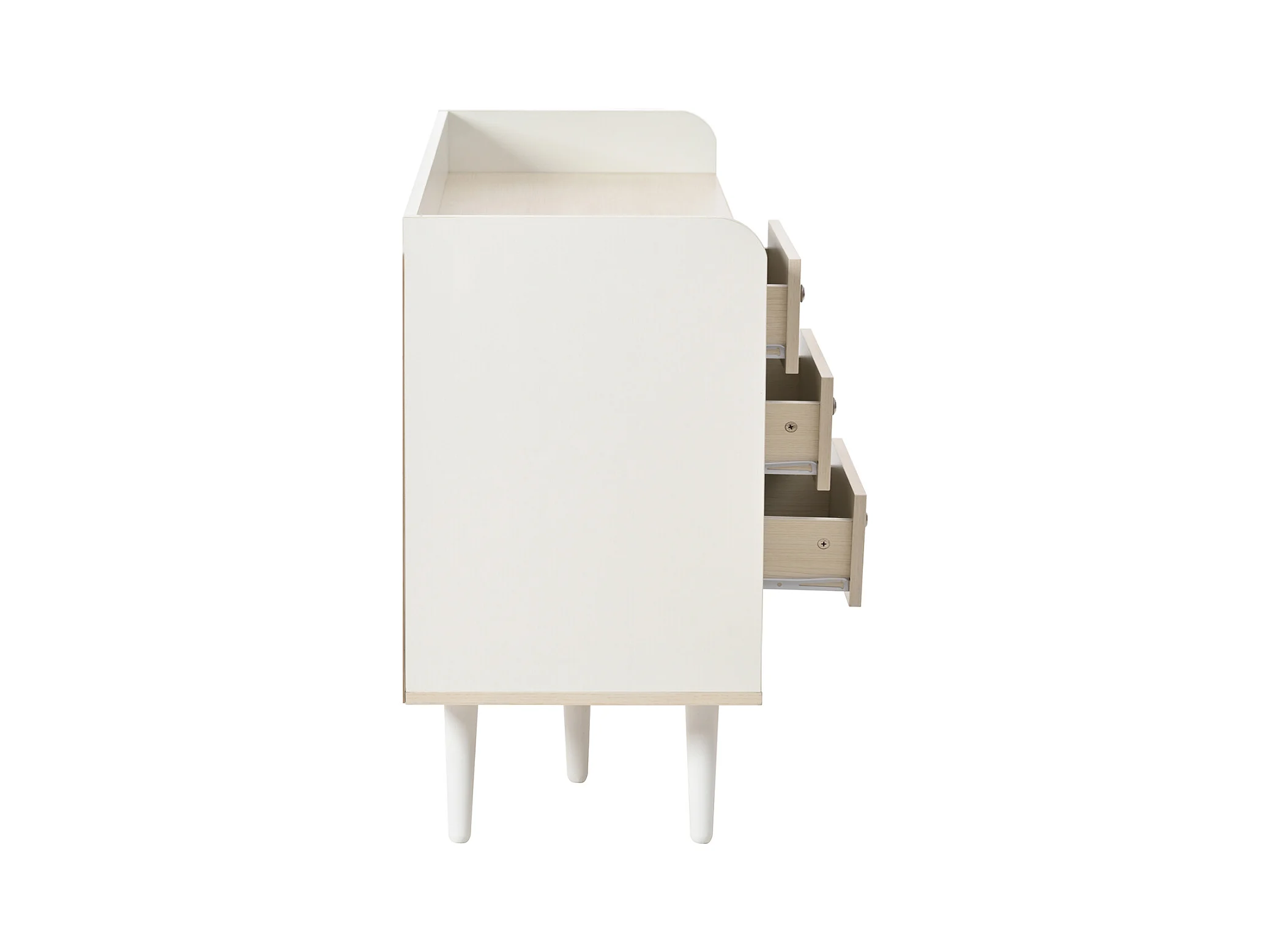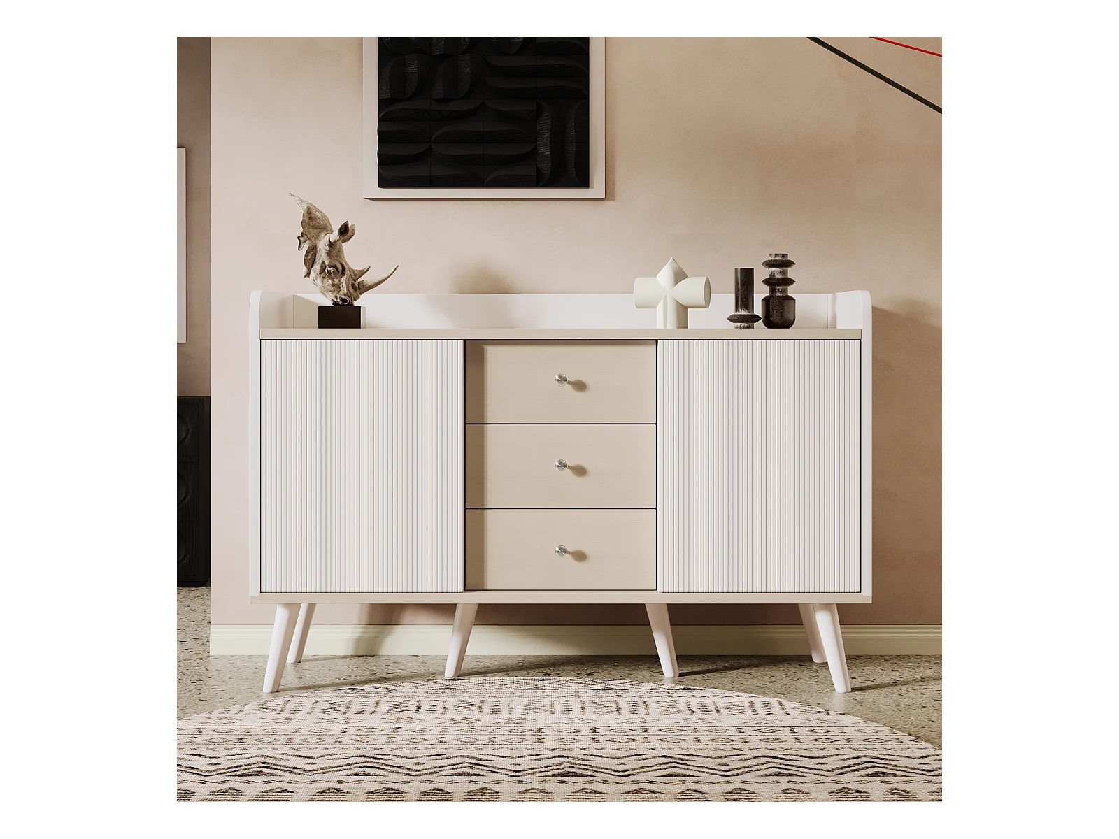 Commode en bois moderne avec portes coulissantes, armoire à 3 tiroirs, blanc et bois foncé