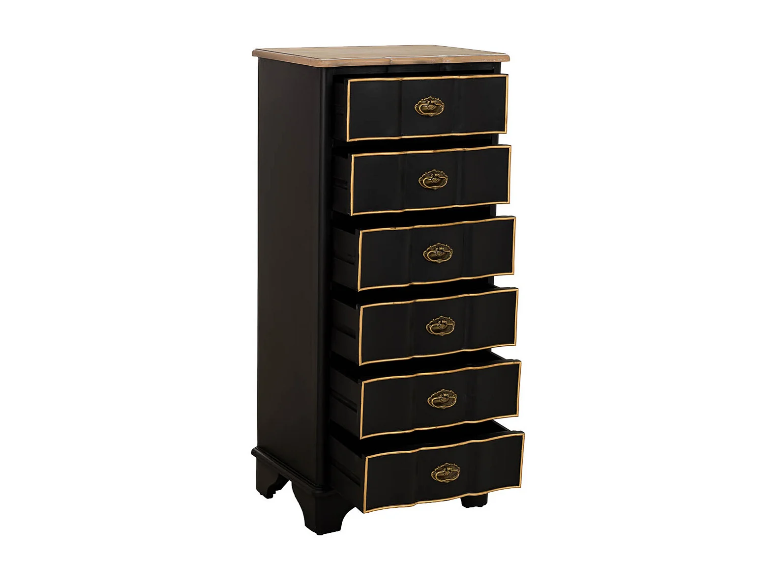 Commode en bois noir : 50 x 35 x 110 cm (h)