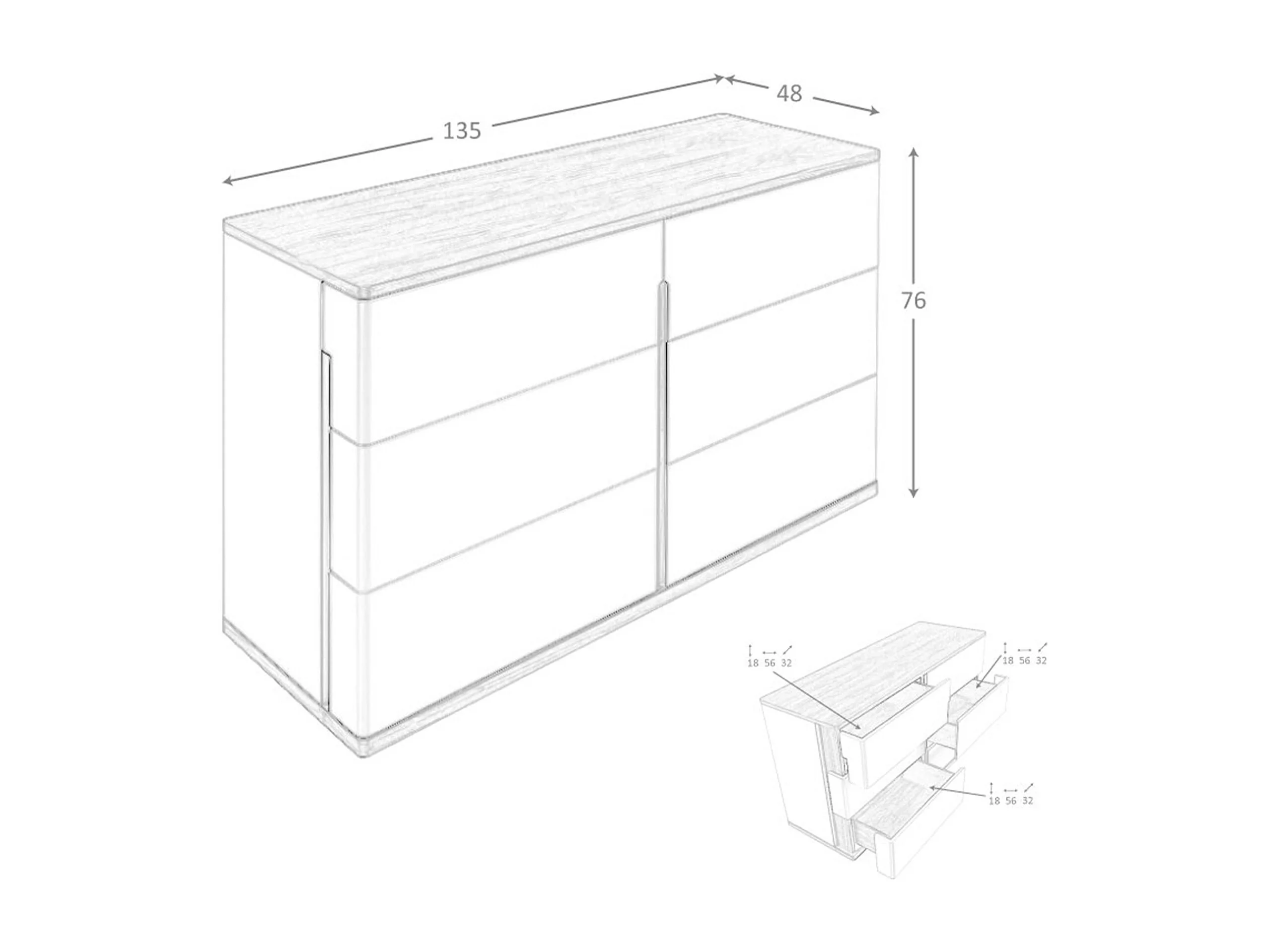 Commode en noyer et acier foncé métallisé avec plateau en marbre de porcelaine 7151 ANGEL CERDA