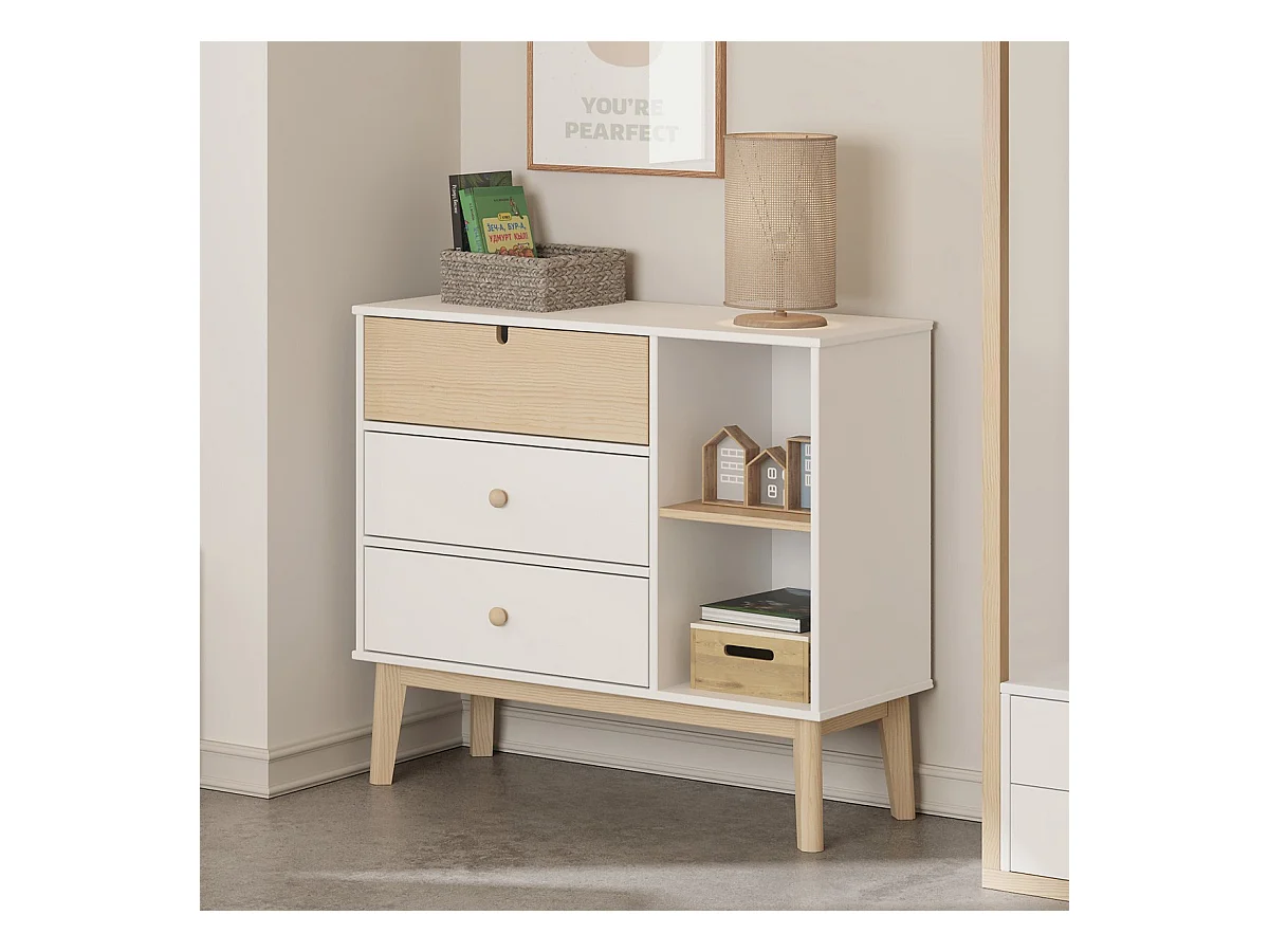Commode enfant 3 tiroirs en bois blanc 90 cm - Lucy