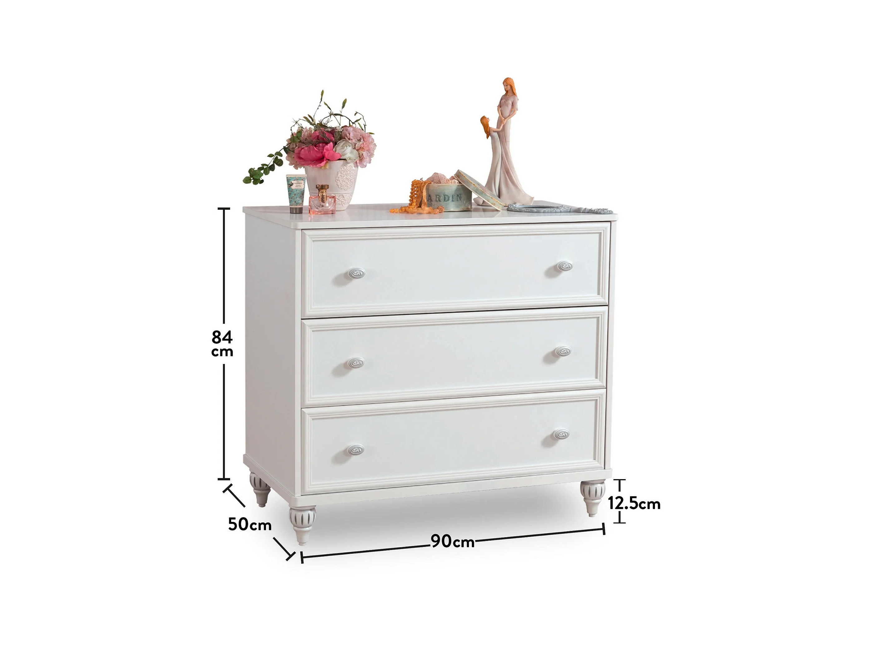 Commode enfant blanche 3 tiroirs Romantika 90cm
