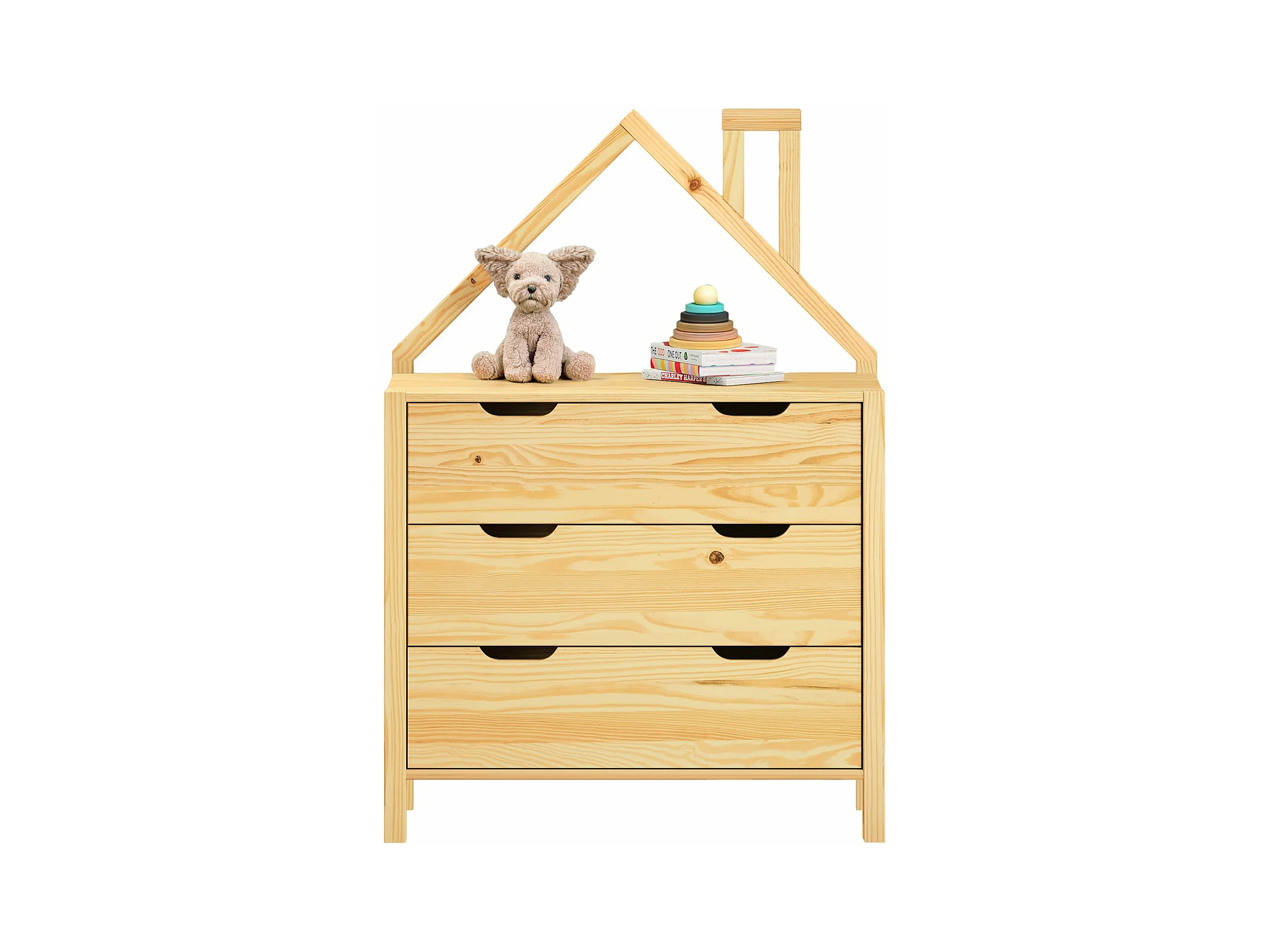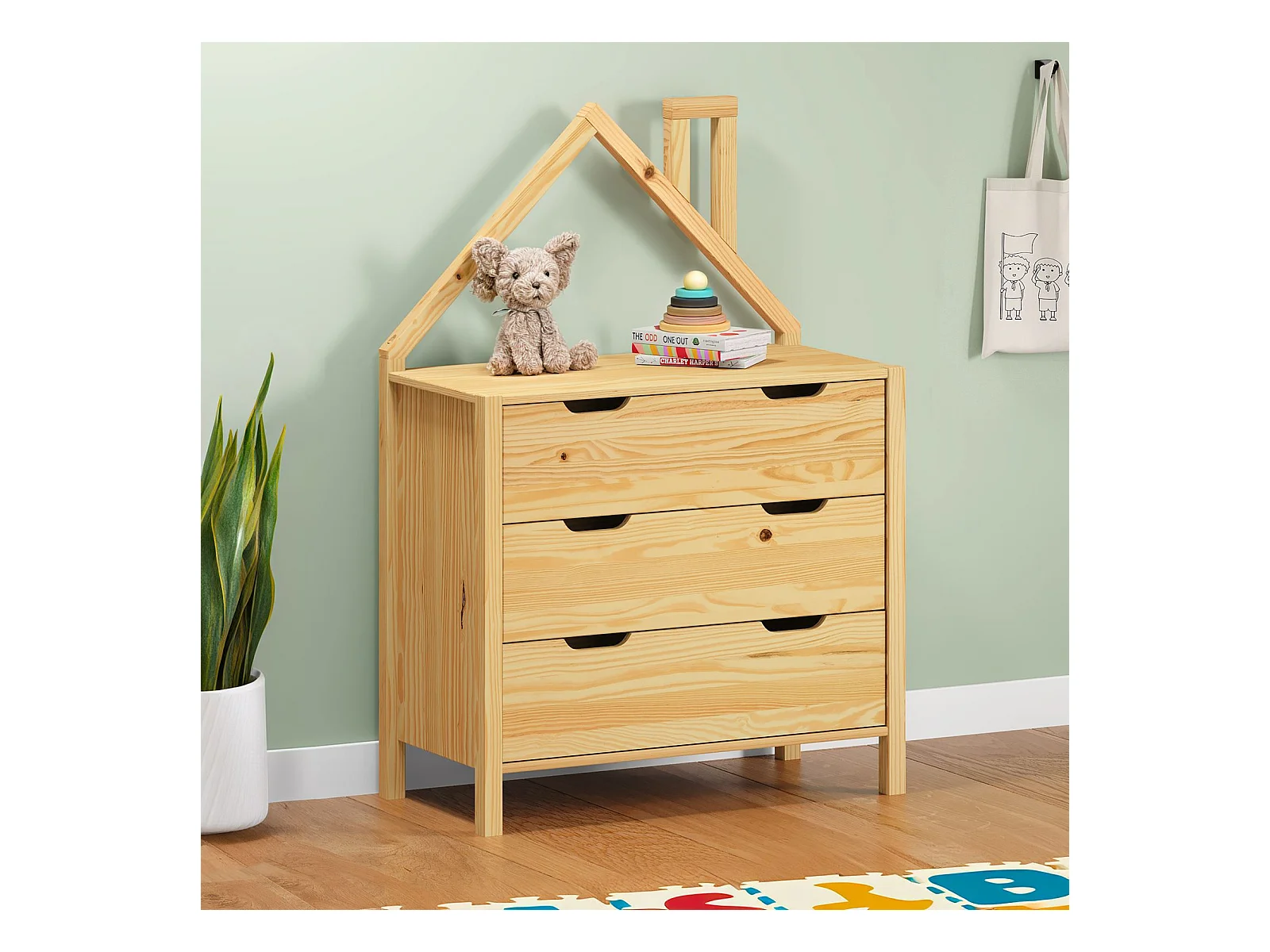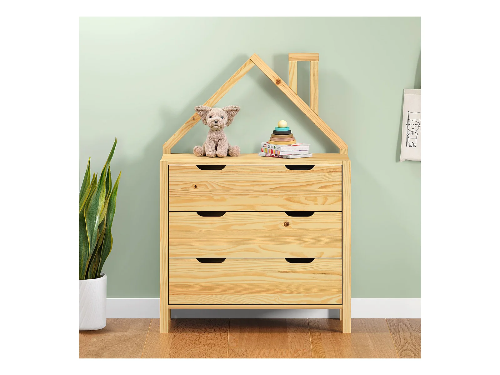 Commode Enfant ELANO en Bois Massif coloris naturel avec 3 Tiroirs de Rangement, 84 x 120 x 41 cm, Meuble Chambre
