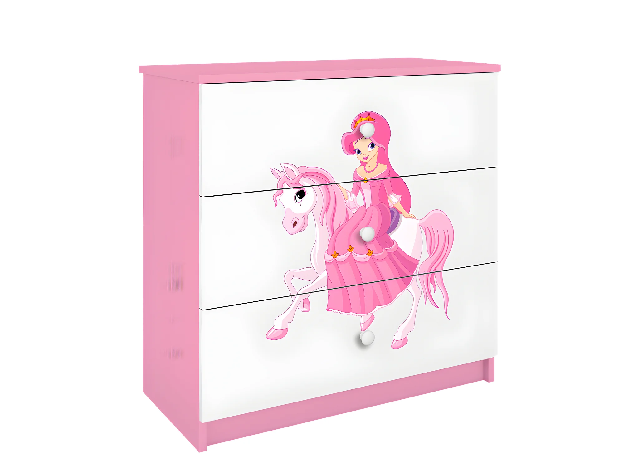 Commode enfant PRINCESSE SUR SON CHEVAL - 3 tiroirs 80 cm x 80 cm x 40 cm - Rose