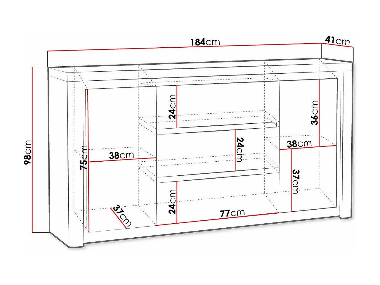 Commode Etrmona 107, Ribbeck chêne|Blanc brillant, Tiroirs et portes, 98x184x41cm
