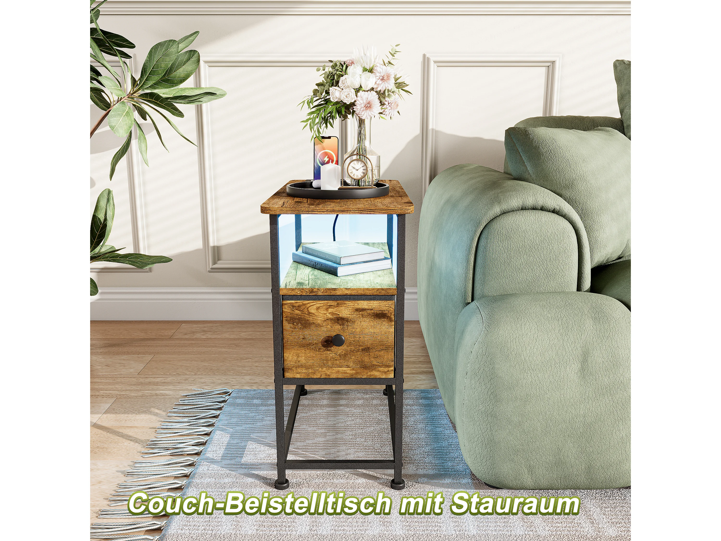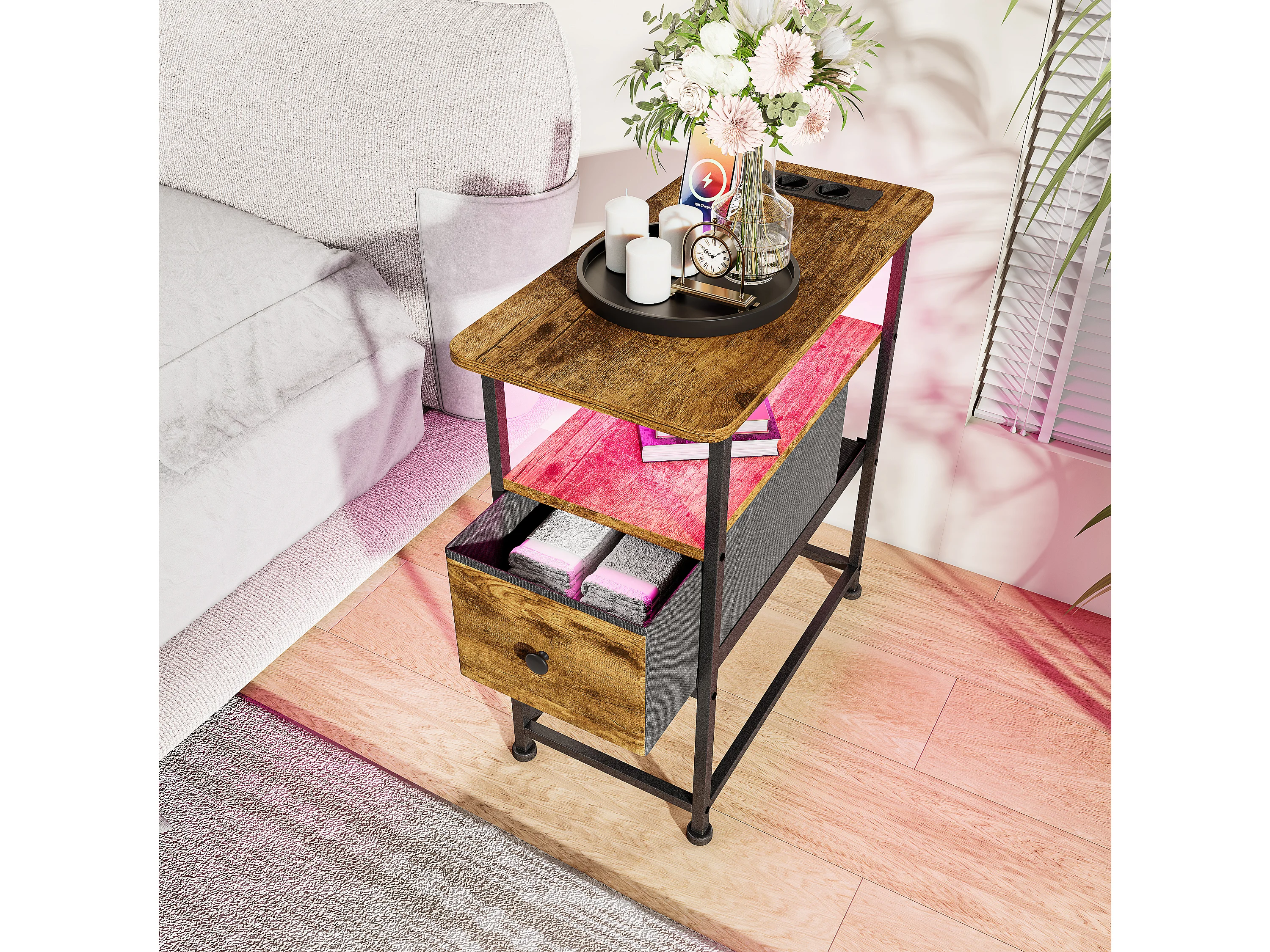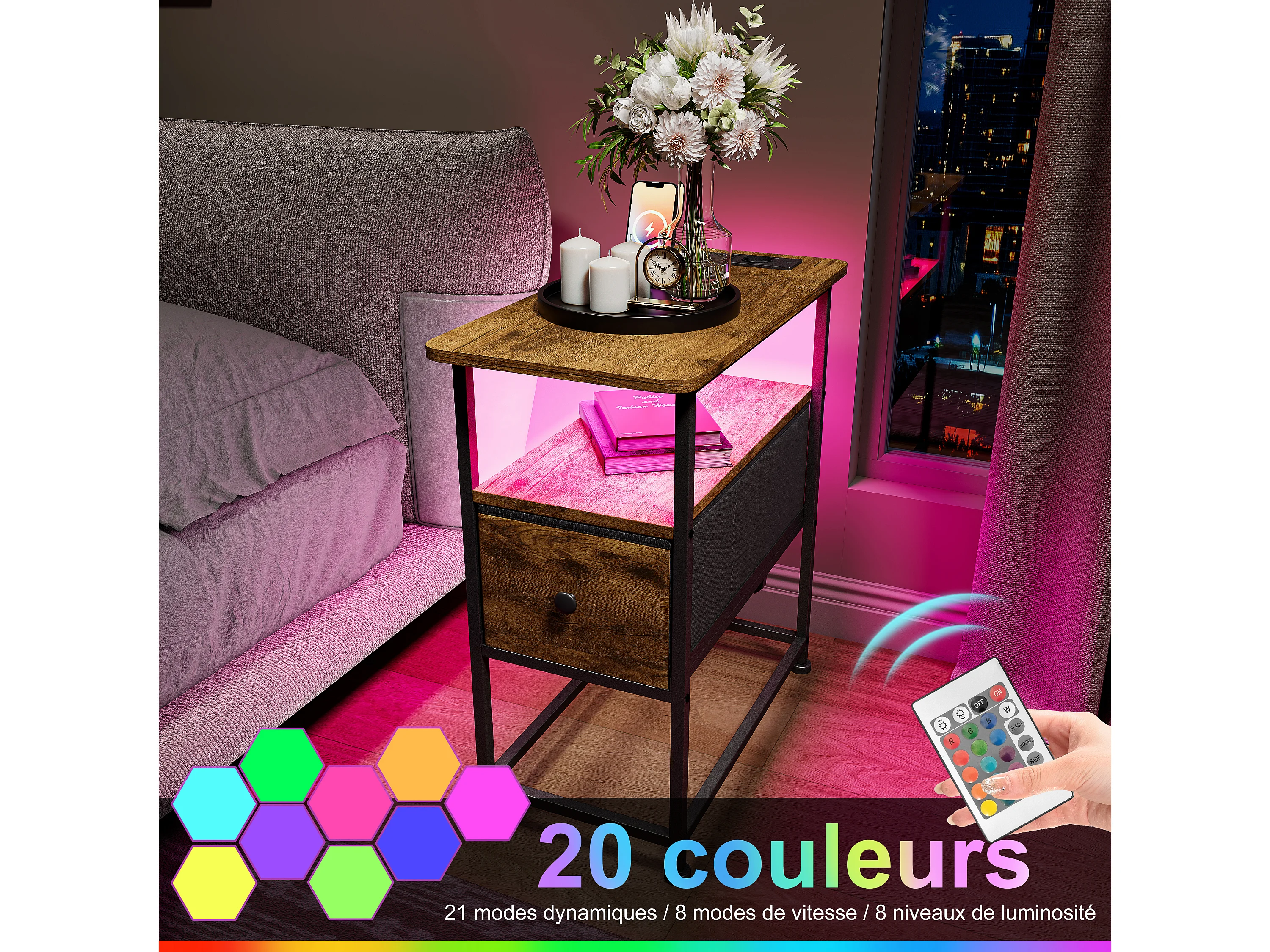Commode étroite à 3 tiroirs, table de chevet avec fonction de chargement et bande lumineuse, table d'appoint avec tiroirs, 30 x 60 x 62 cm, Tigré