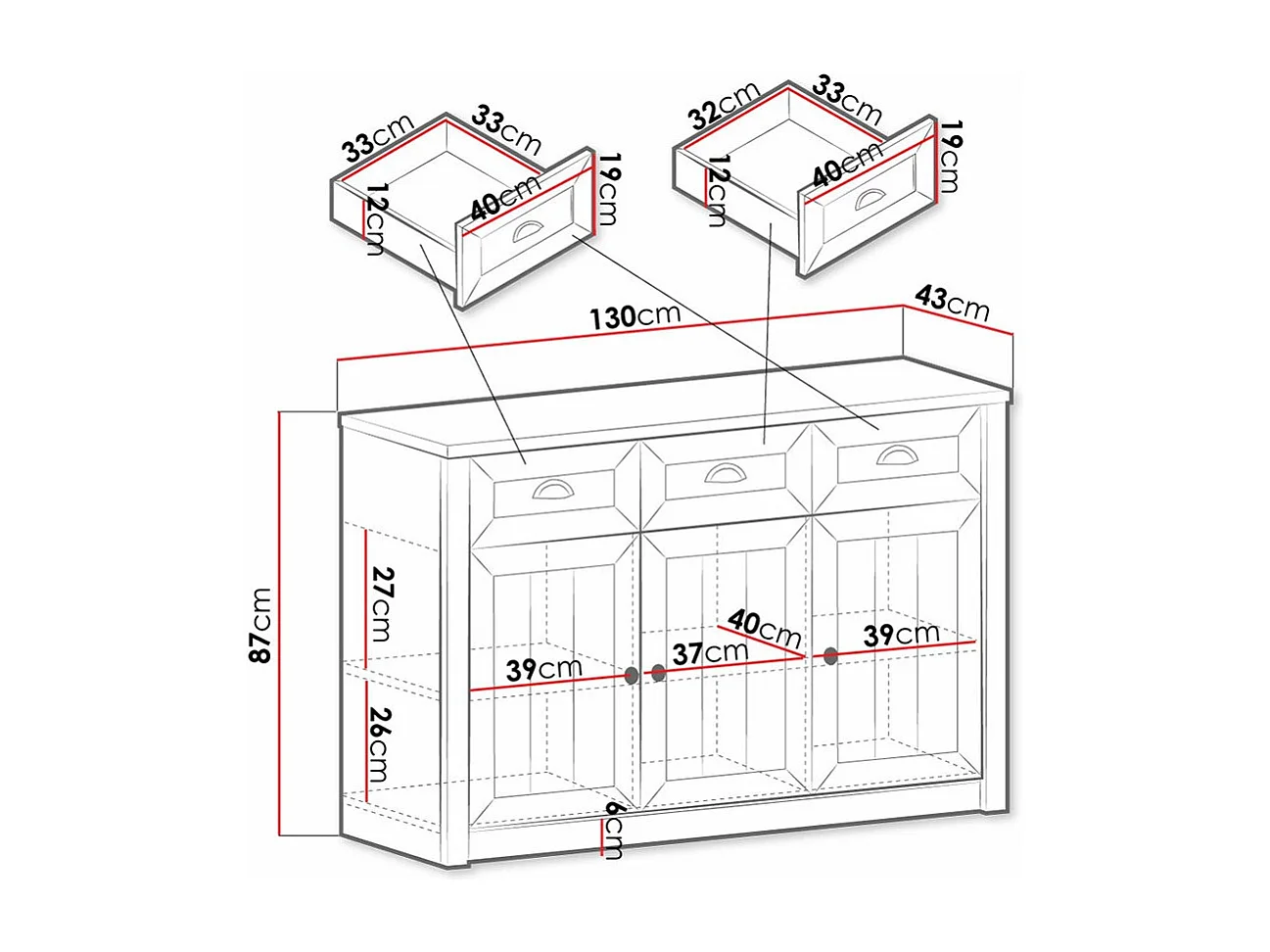 Commode Ferdore 101, Pin Anderson|Chêne de Lefkas, Tiroirs et portes, 87x130x43cm