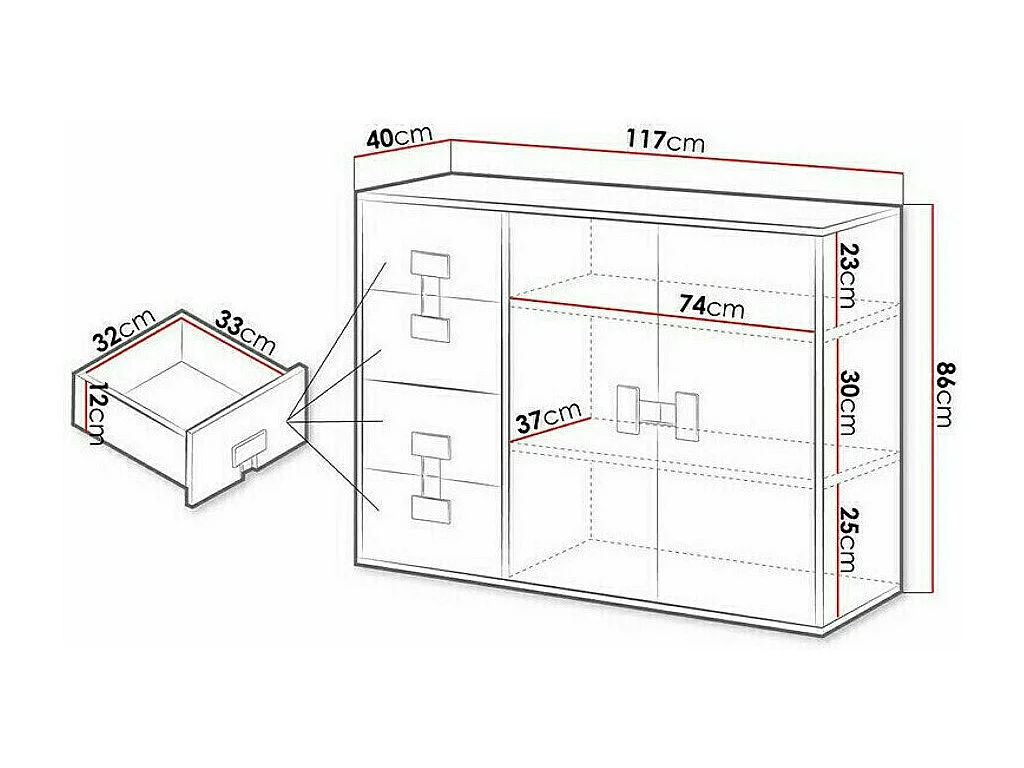 Commode Florevi 102, Gris brillant|Chêne Artisan, Tiroirs et portes, Nombre de tiroirs: 4