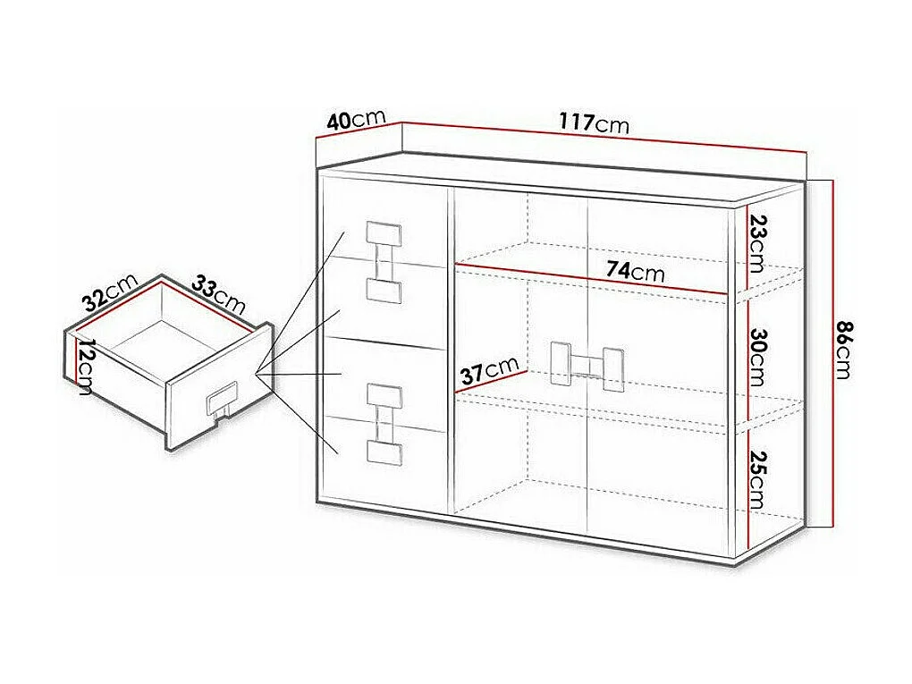 Commode Florevi 102, Mat blanc|Chêne Artisan, Tiroirs et portes, Nombre de tiroirs: 4,