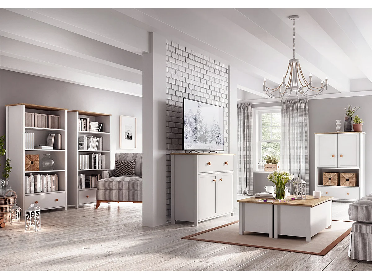 Commode Romelbo 111, Chêne|Blanc, Tiroirs et portes, Nombre de tiroirs: 1, 132x85x42cm
