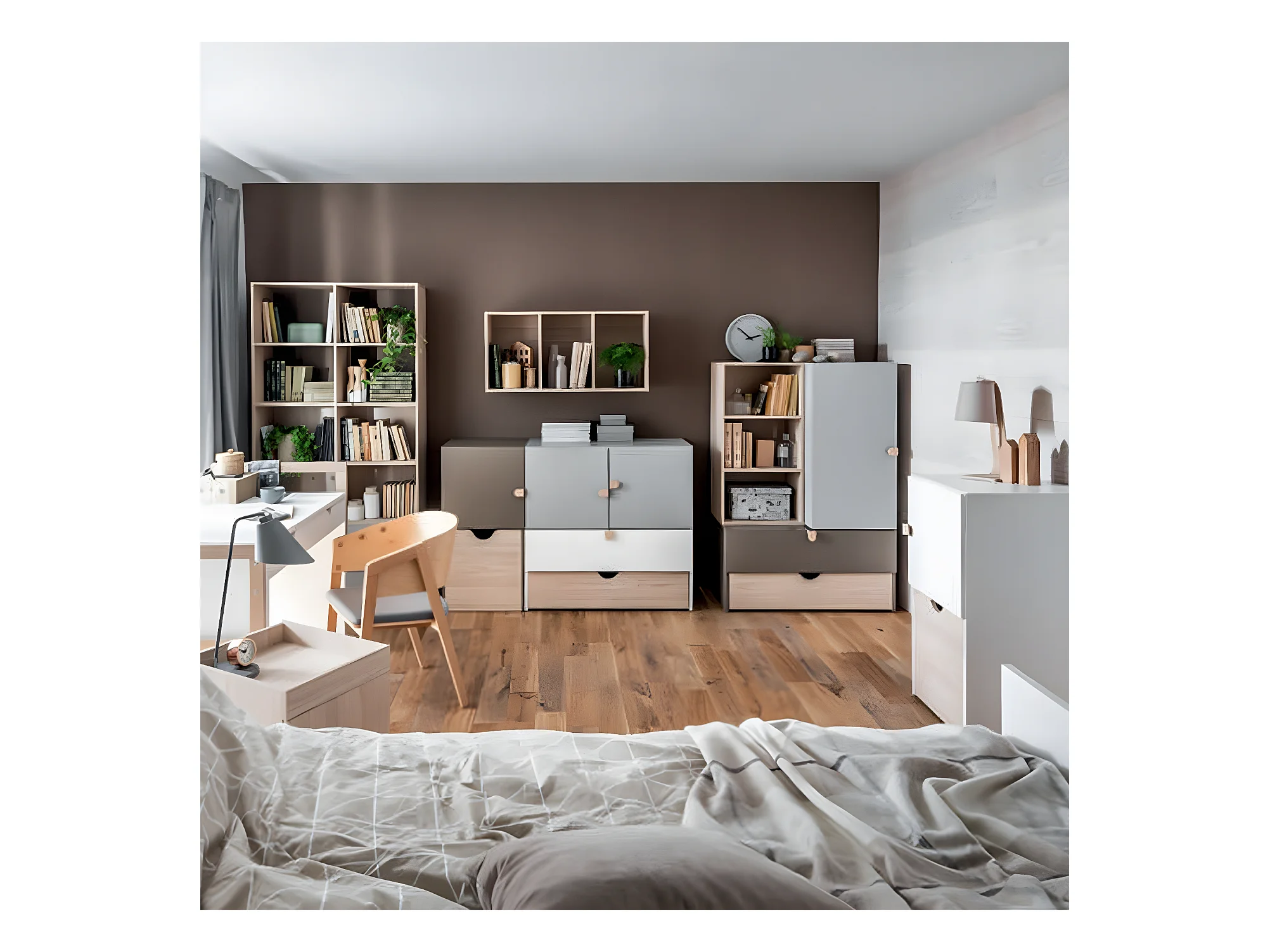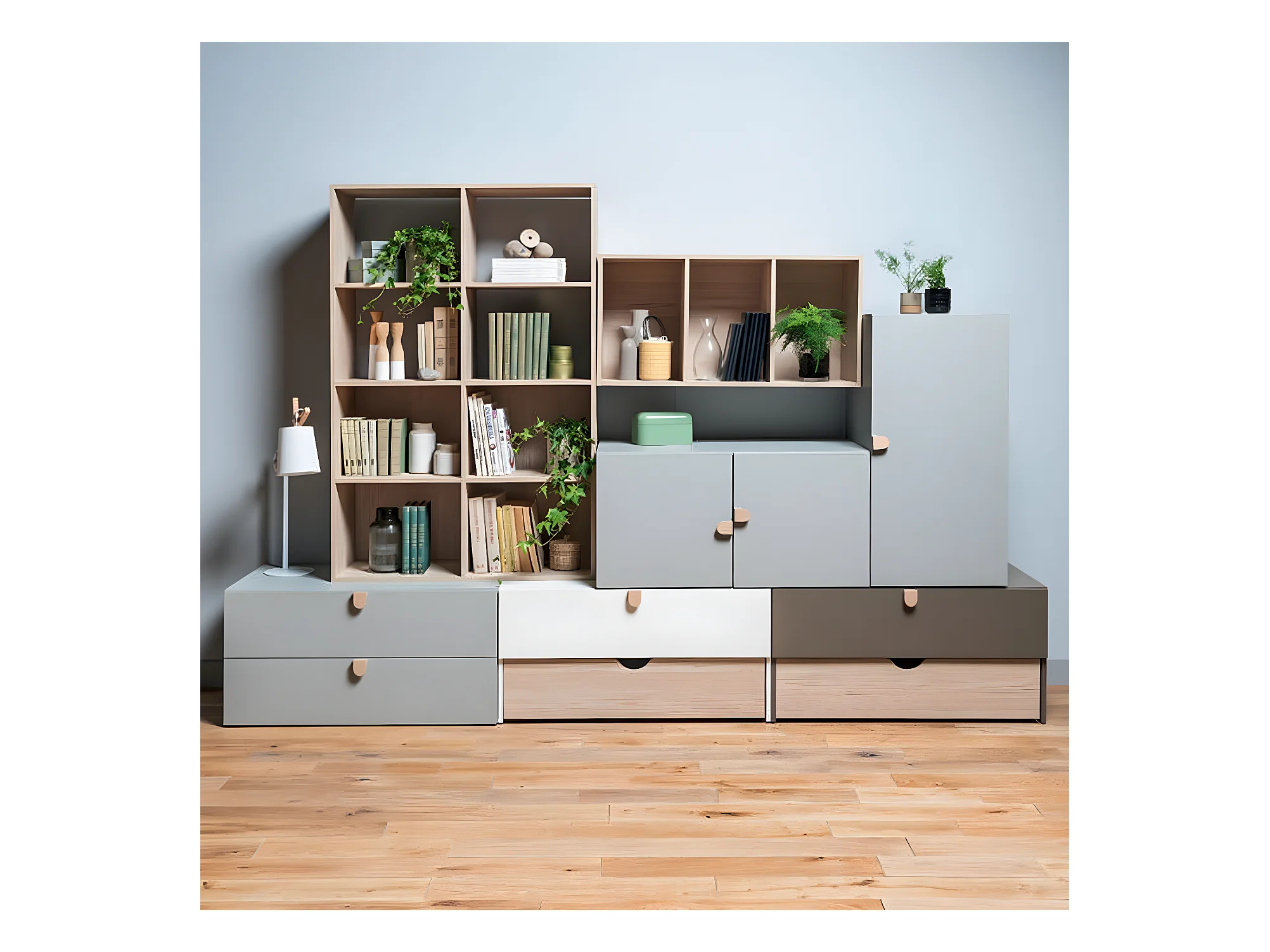 Commode Grise 2 Tiroirs avec Poignées Bois - Stige