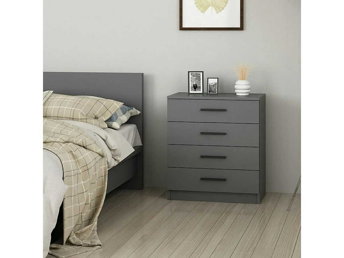 Commode grise moderne 4 tiroirs, poignées noires MARFA