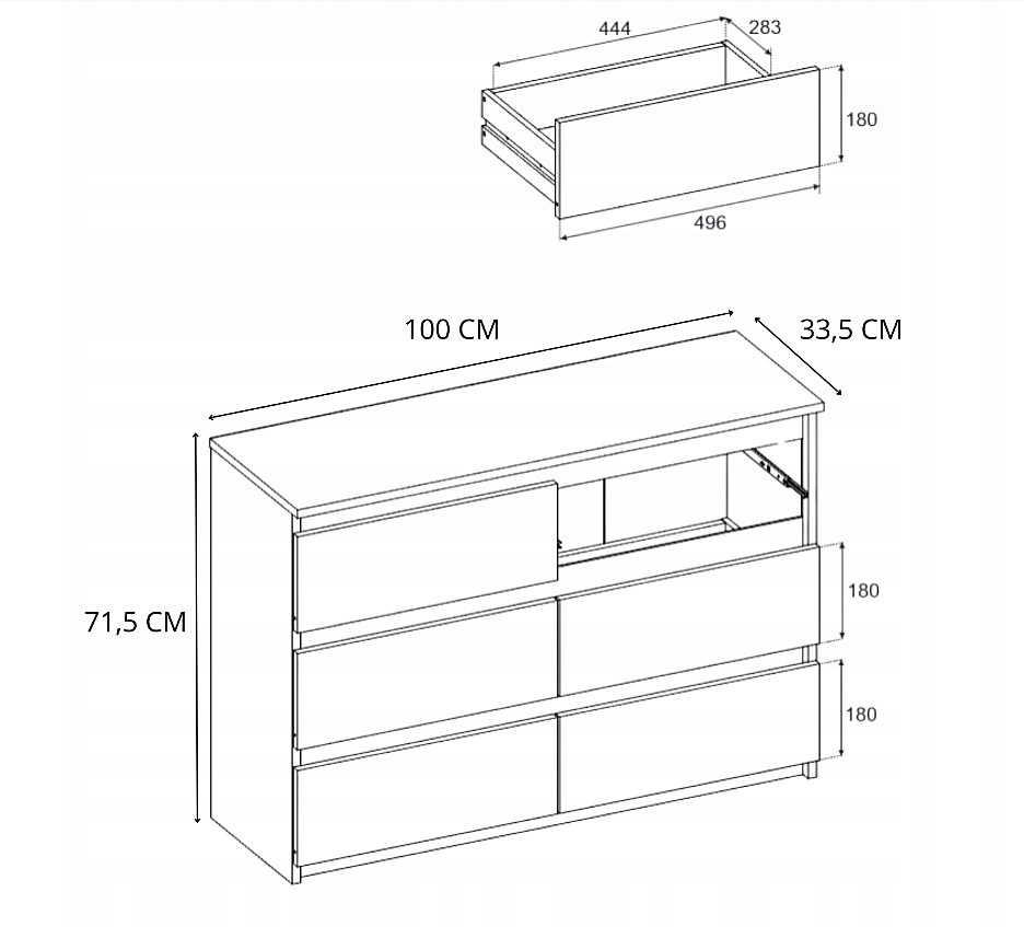 Commode 6 tiroirs – style contemporain – GRIS – 100 X70X33,5 cm - chifonnier LOFT