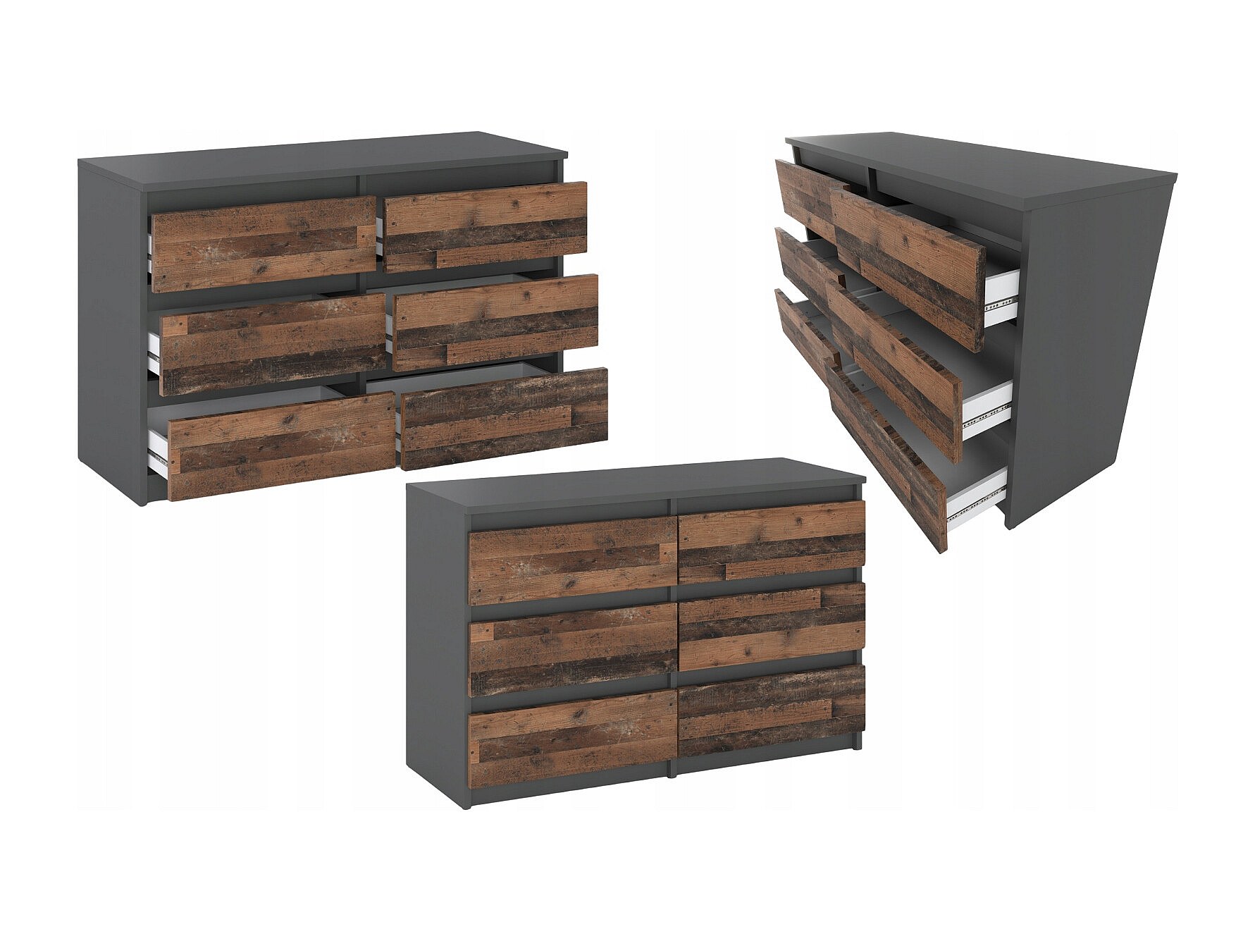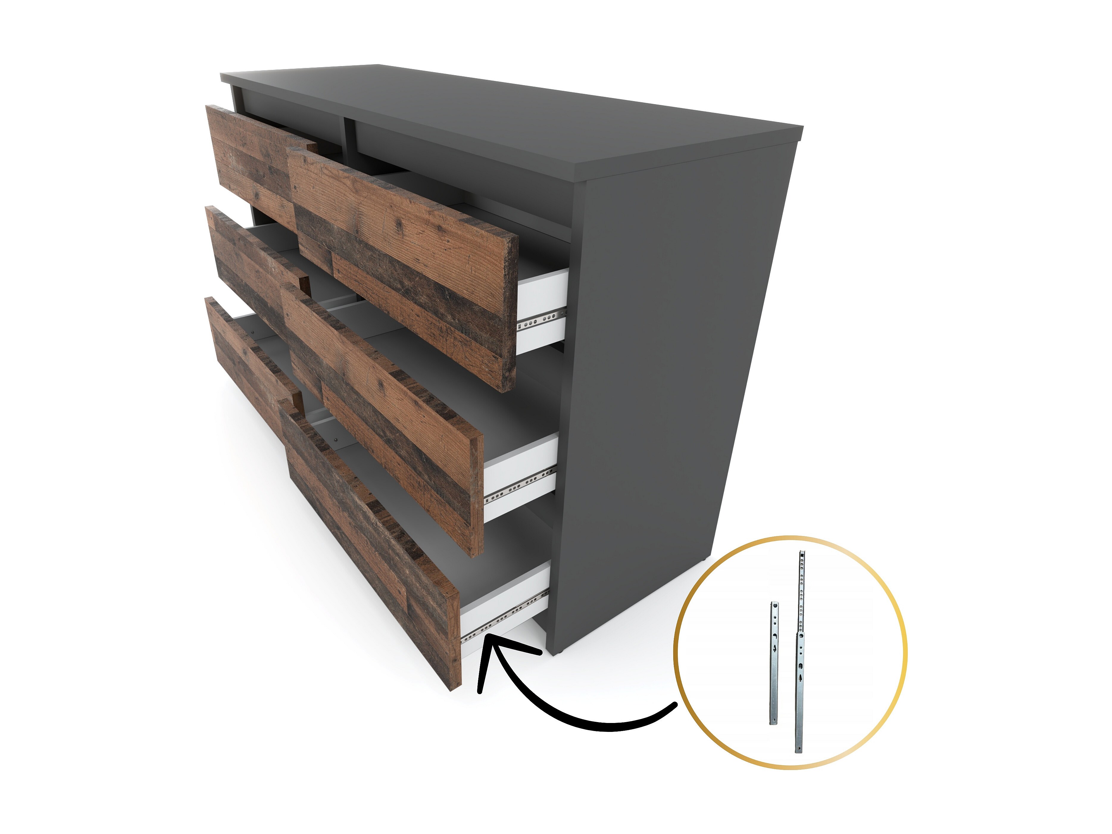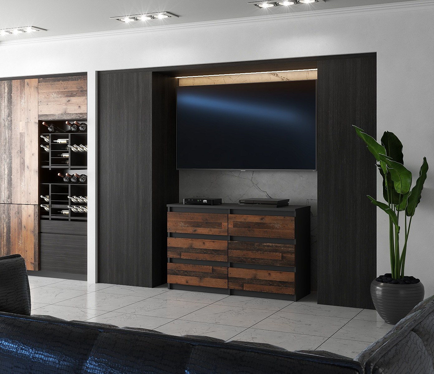 Commode Noire + Chêne Wotan 100 cm – 6 tiroirs – Meuble TV spacieux style loft / salon