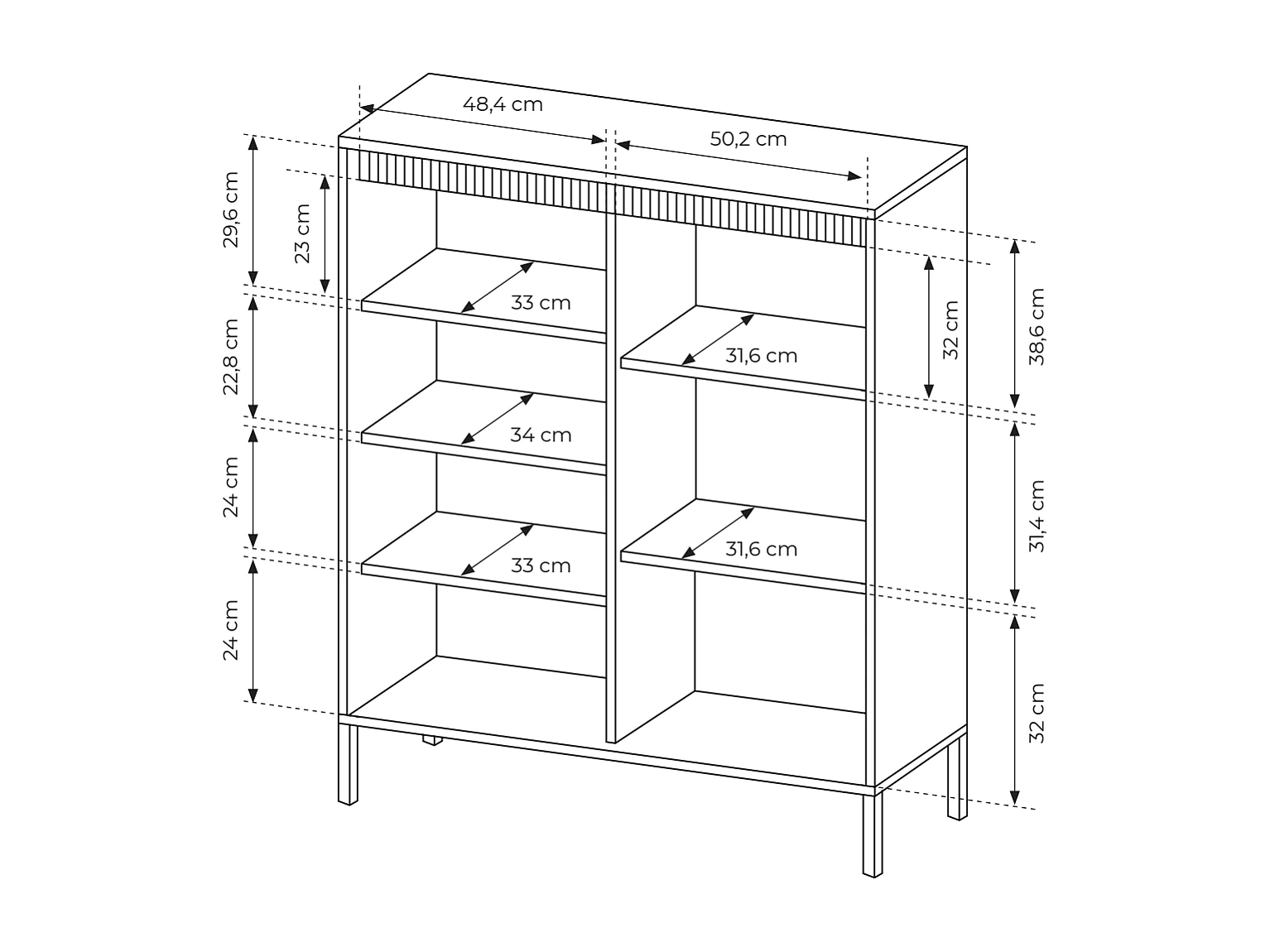Commode haute à trois portes - 104 cm - avec façade fraisée - beige - FALSETTO