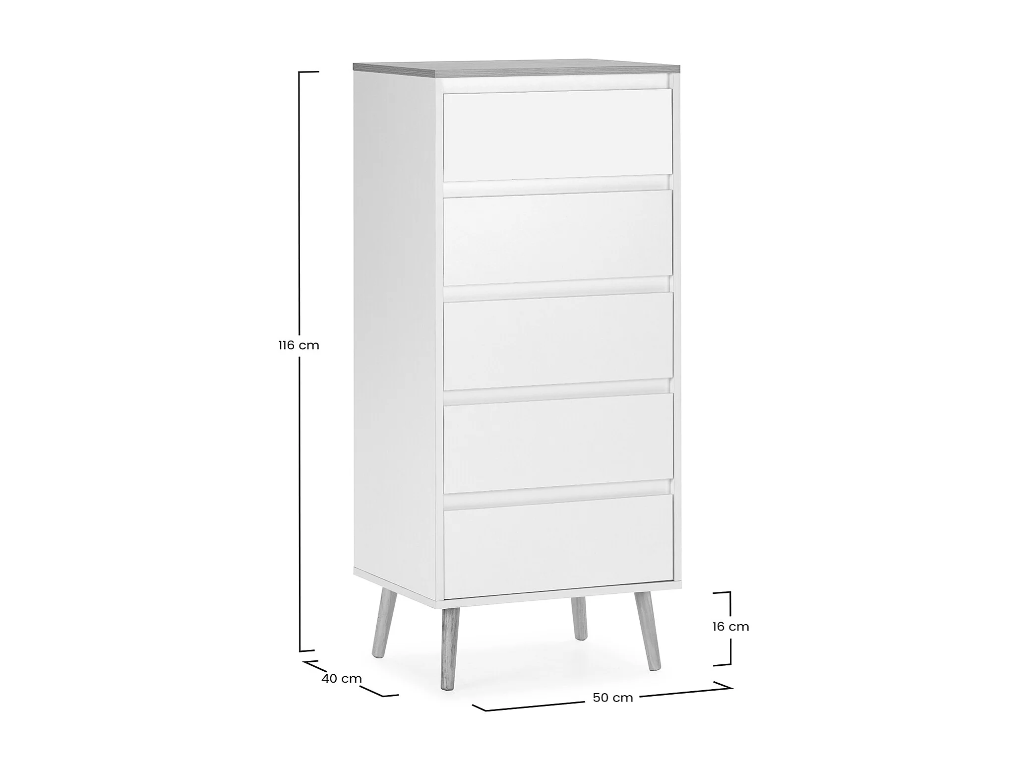 Commode haute Desi 5 tiroirs couleur Blanc