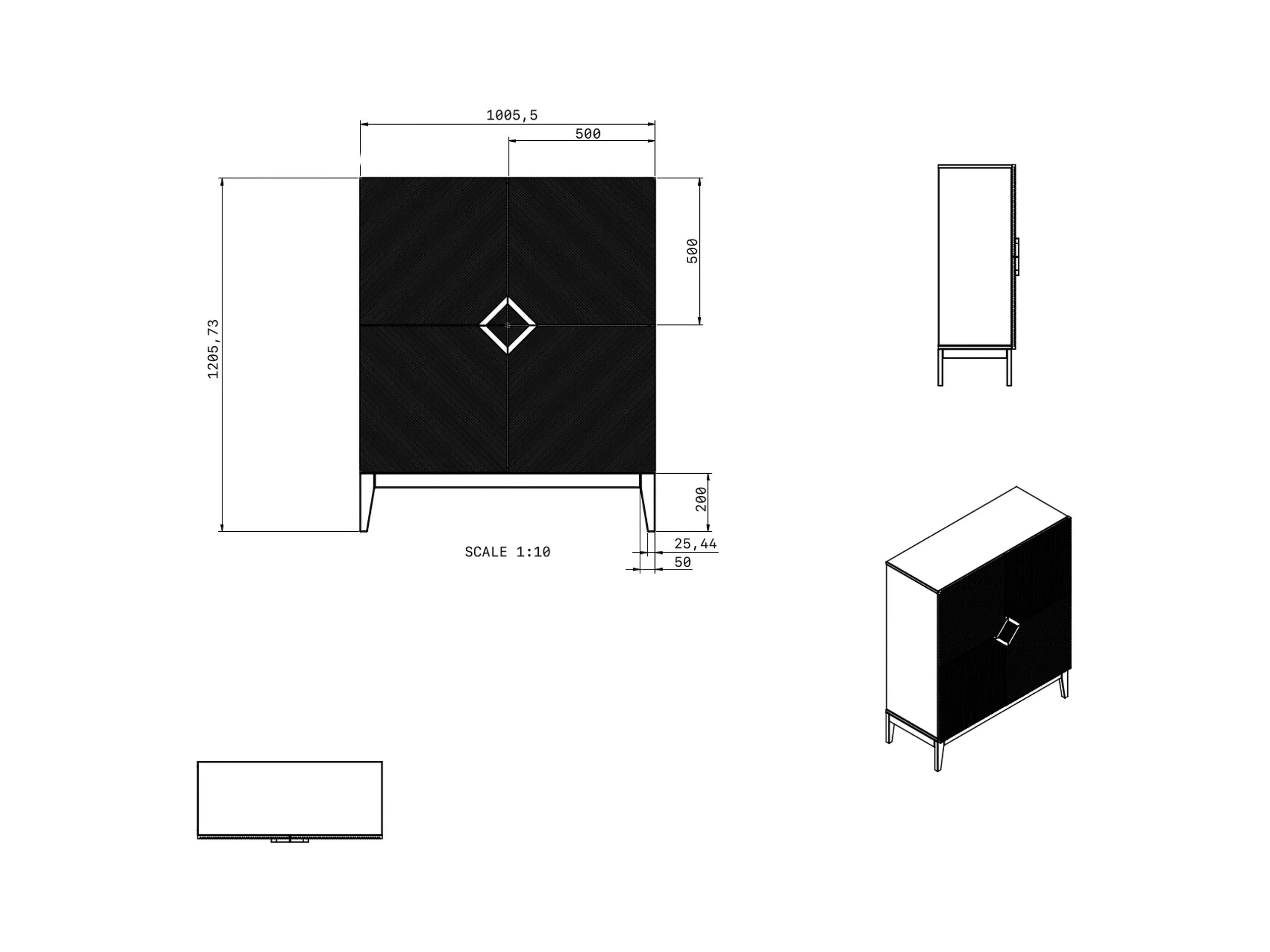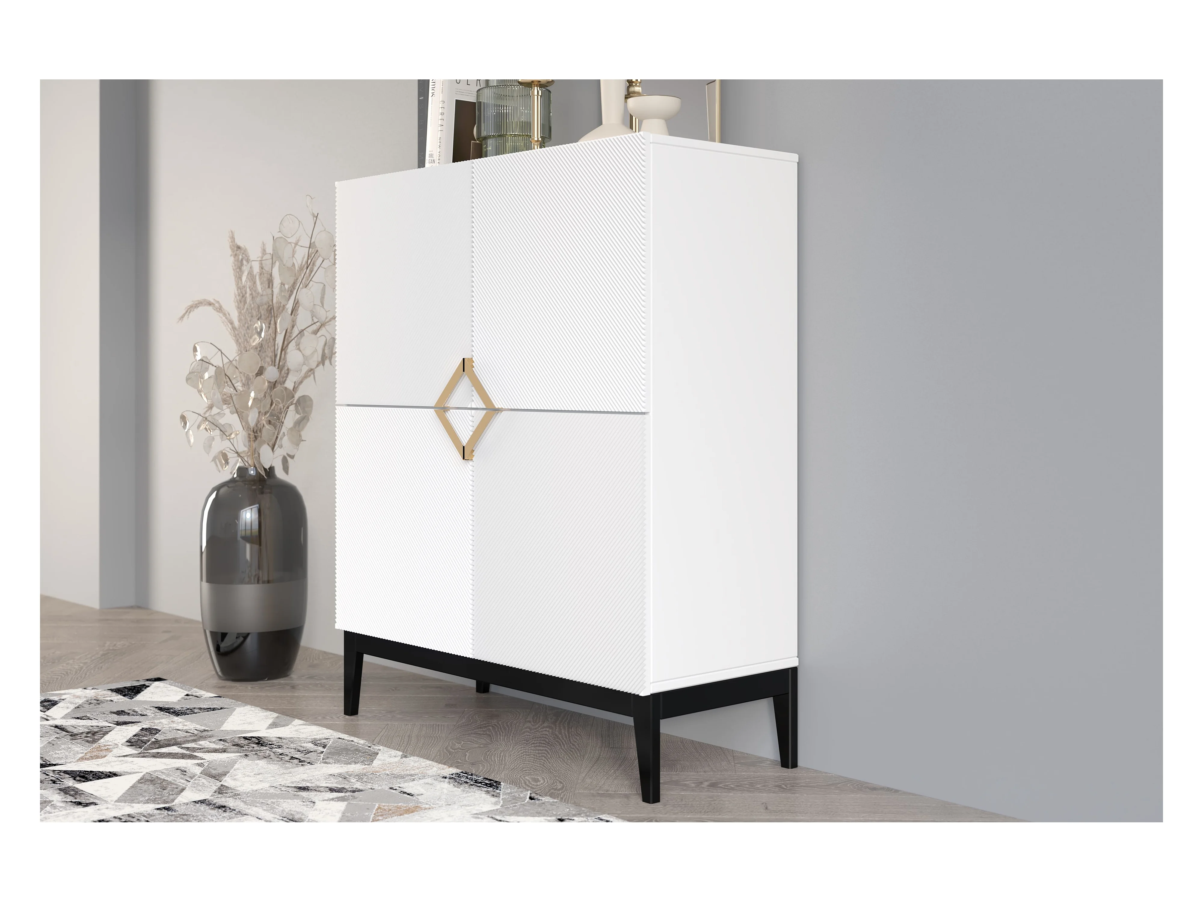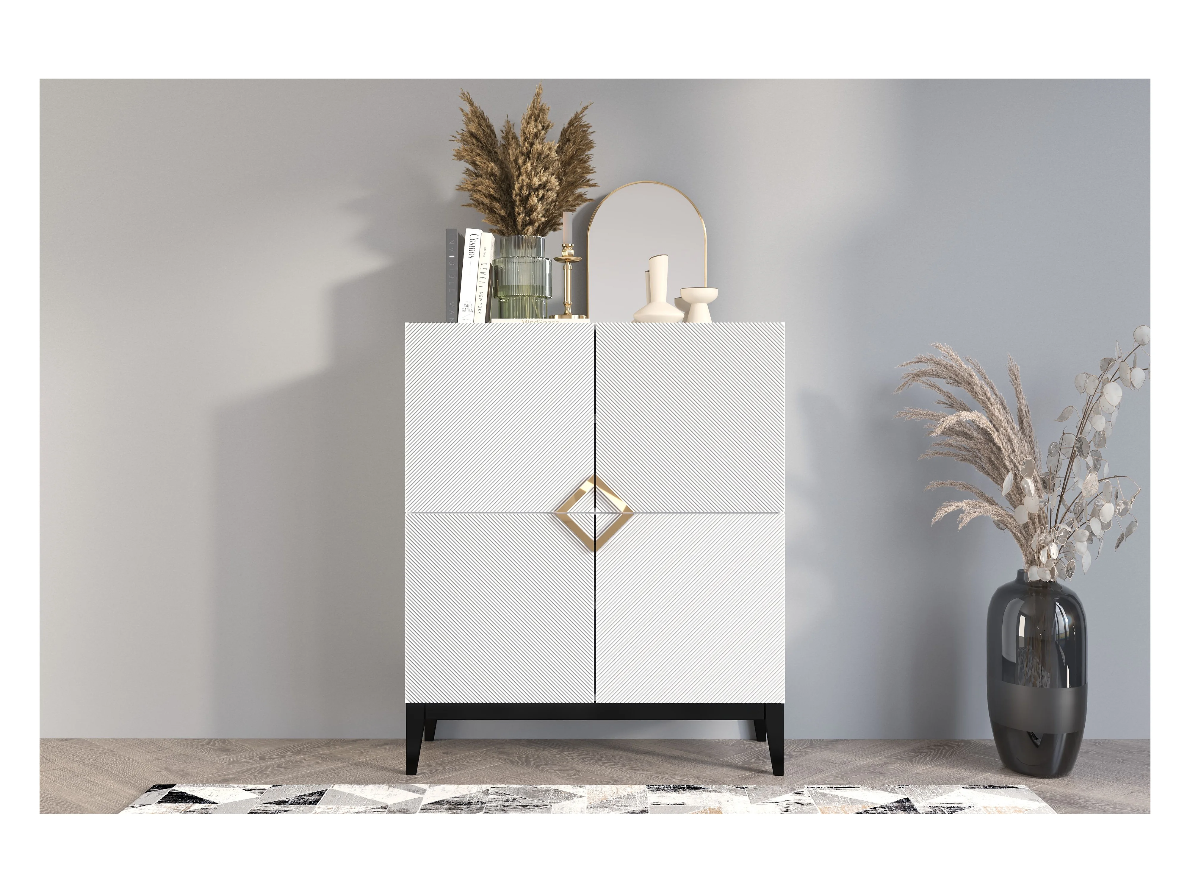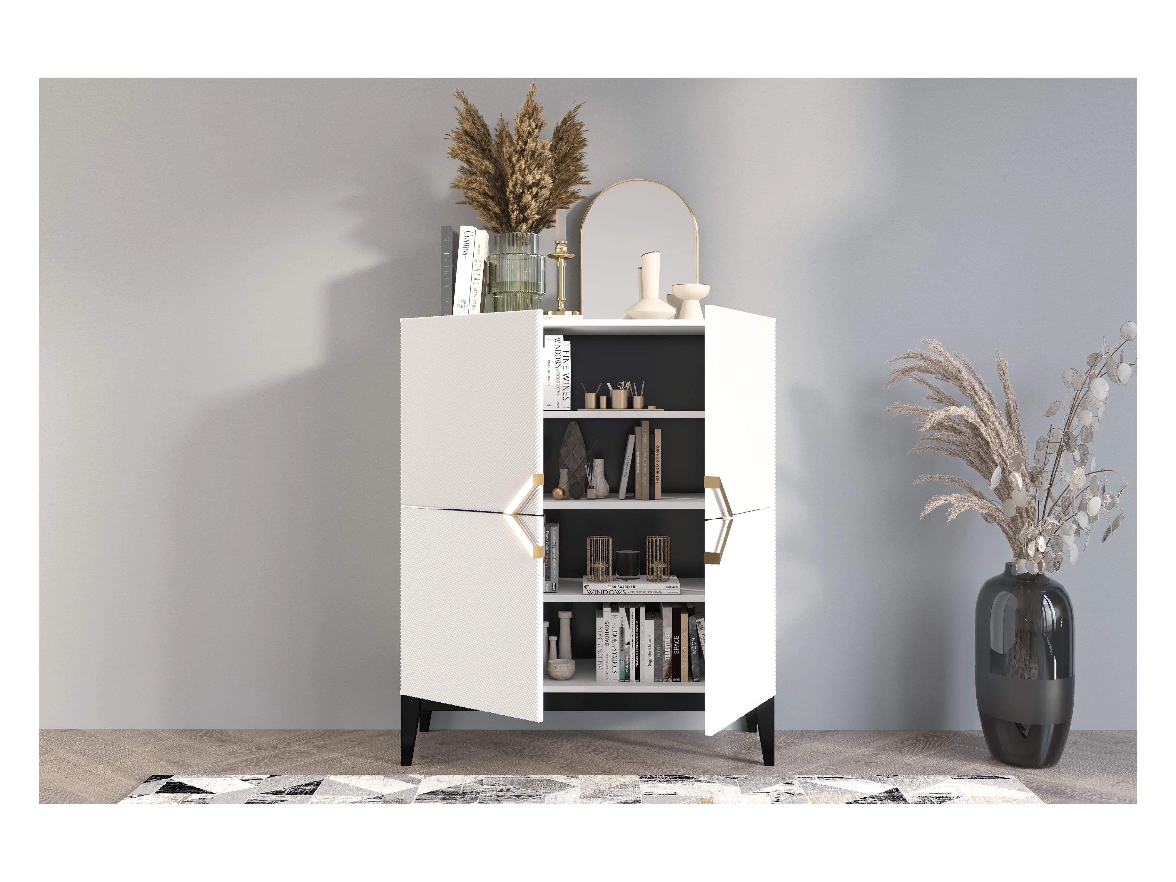 Buffet haute en bois DEMI HIGH / blanche + pieds noirs / 100,5 cm