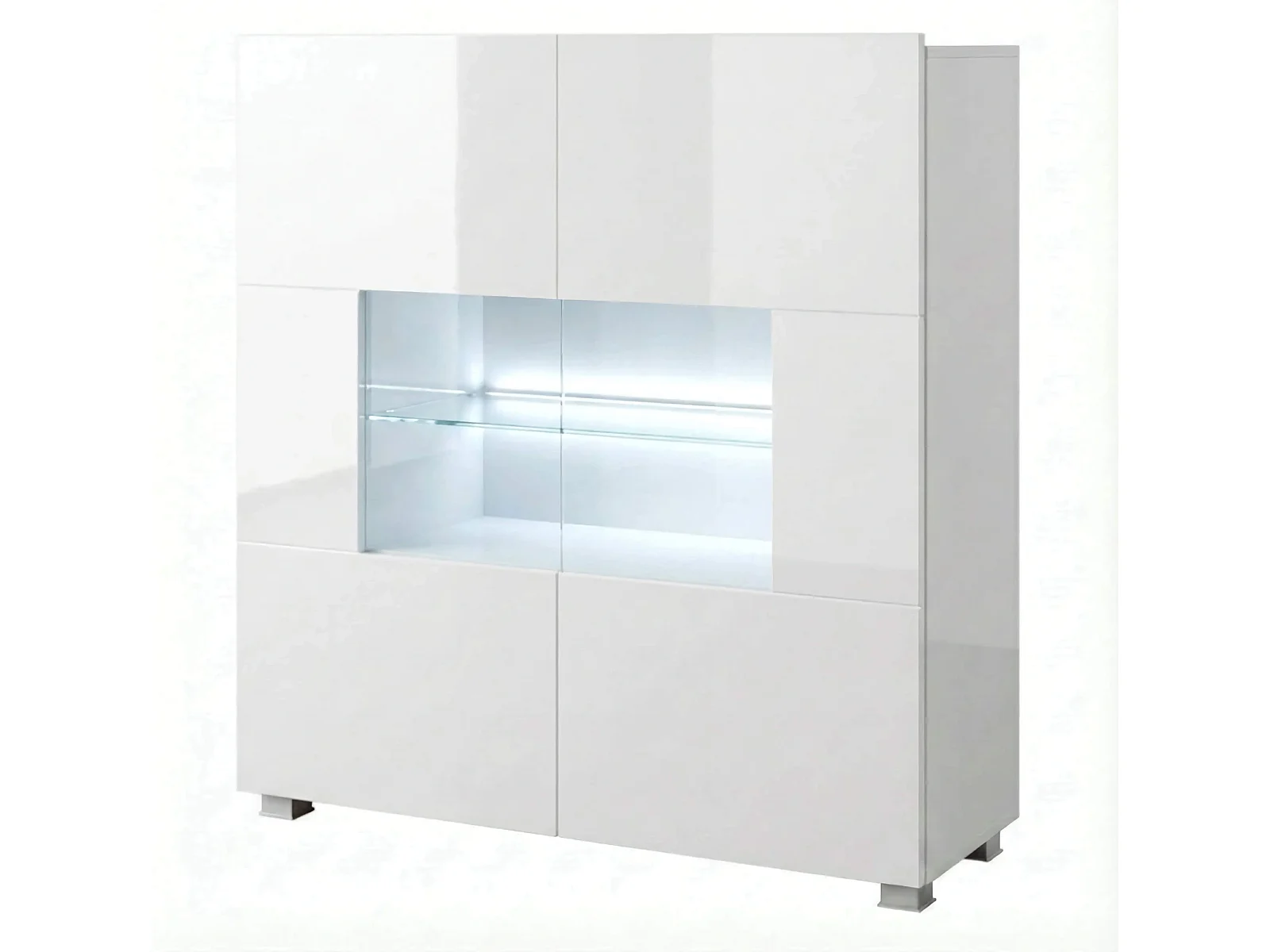 Commode Haute Montreal 100 cm - Blanc Brillant - LED Blanche Incluse