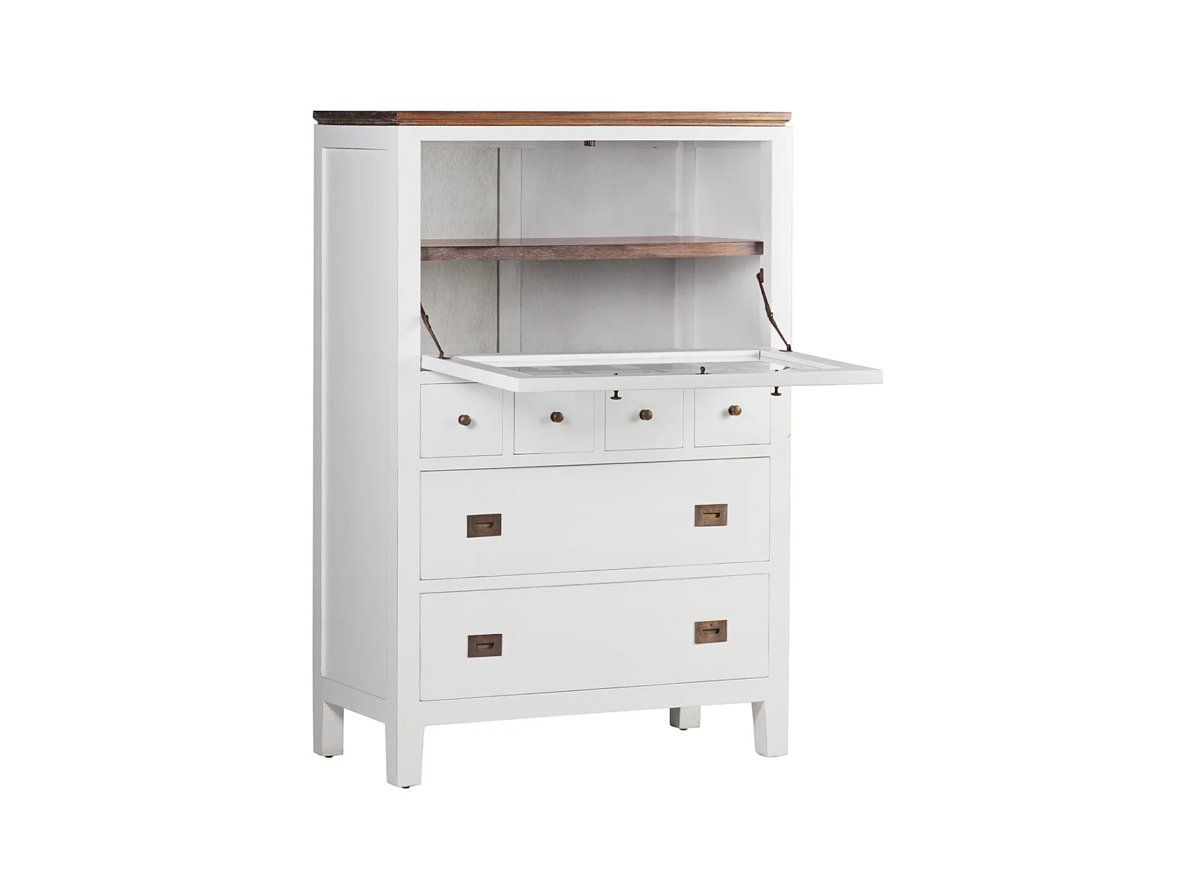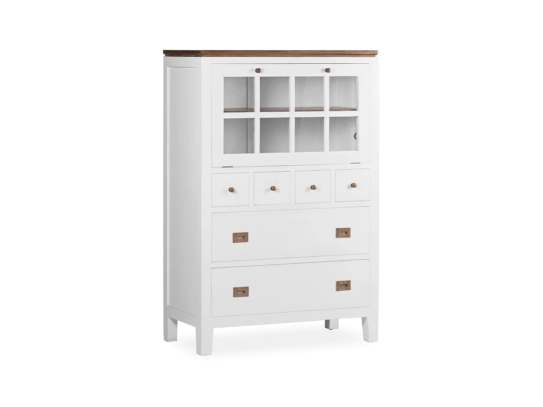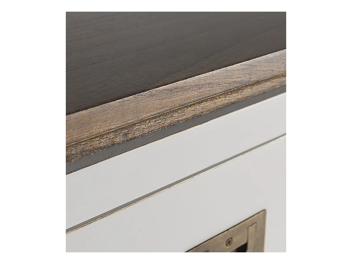 Commode haute provençale bois massif de mindi blanc et marron Kirest 90cm