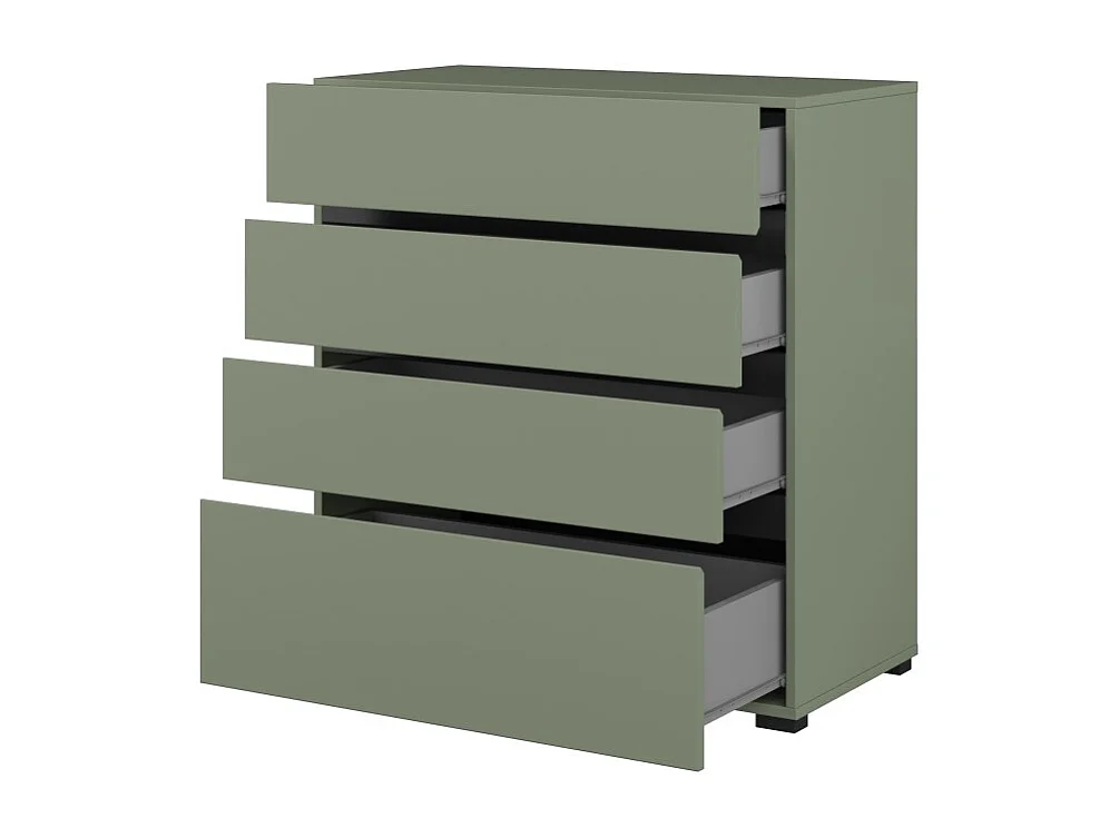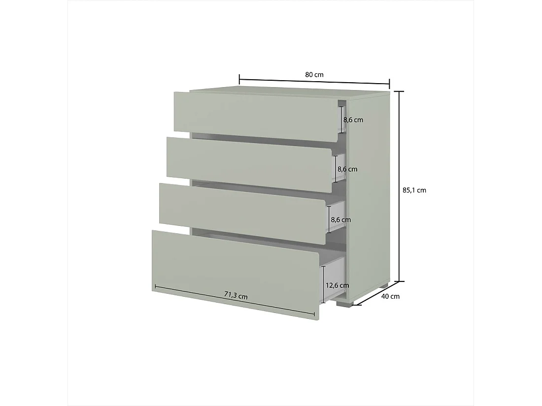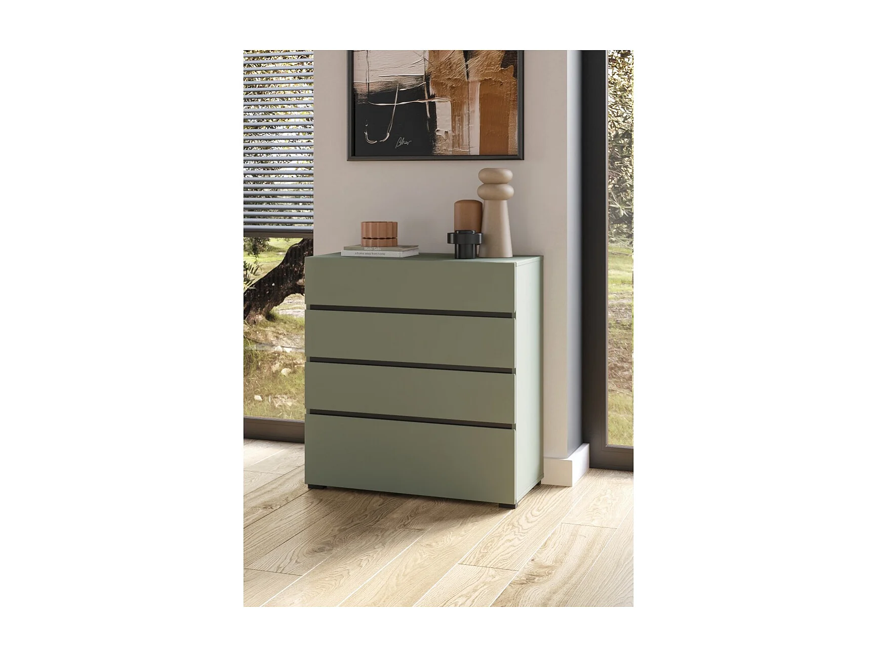 Commode HAVANA – 4 tiroirs – Coloris vert sauge et noir – Style moderne et rangement compact