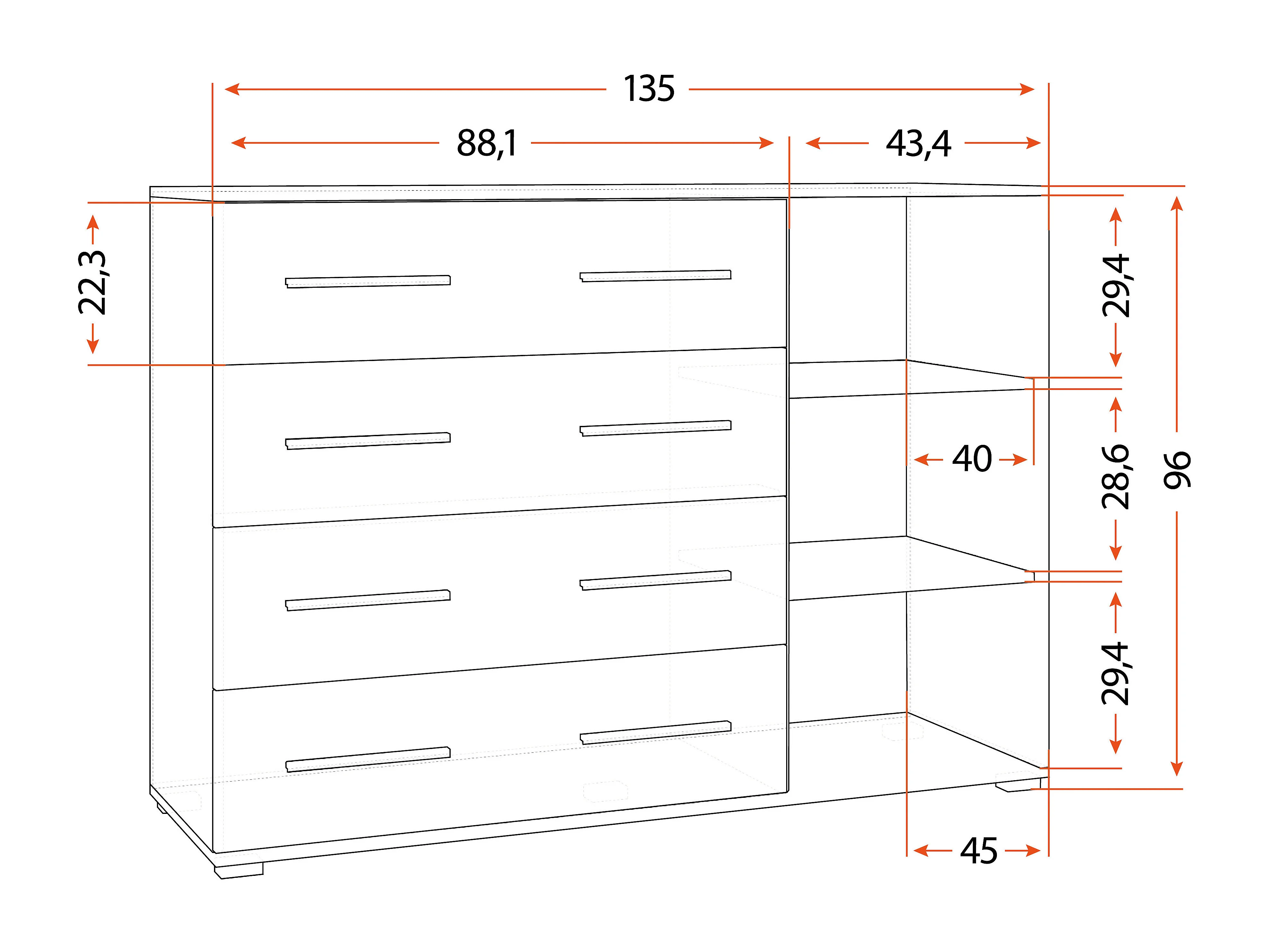 Commode Ilario II 135 cm - Blanc