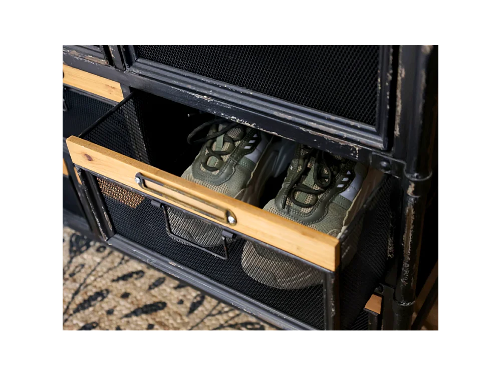 Commode industrielle en bois marron et fer noir 107 x 34 x 86.5 cm