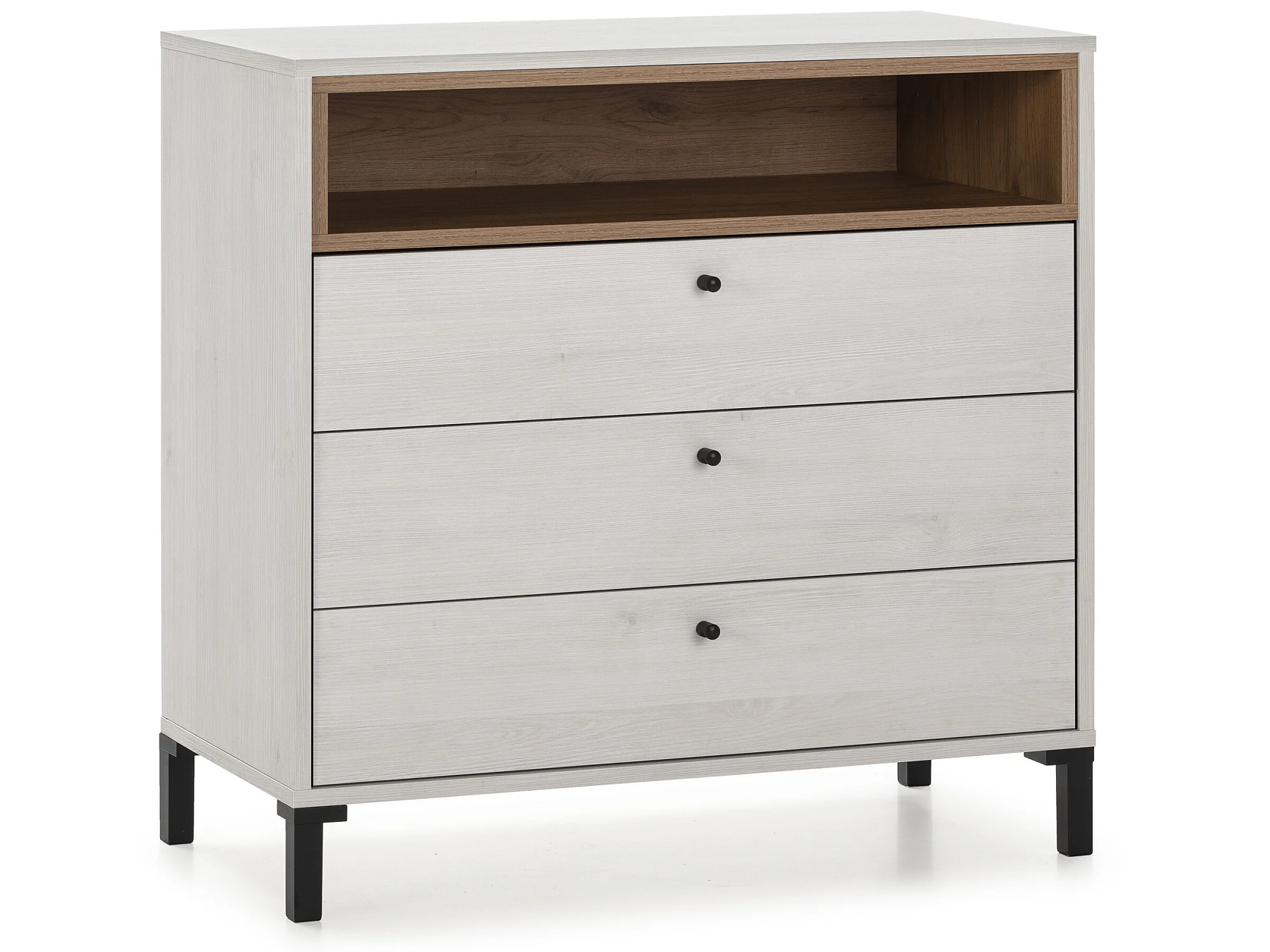 Commode Javea 3 tiroirs et 1 Niche, Couleur Blanc et Bois, 80 cm Largeur