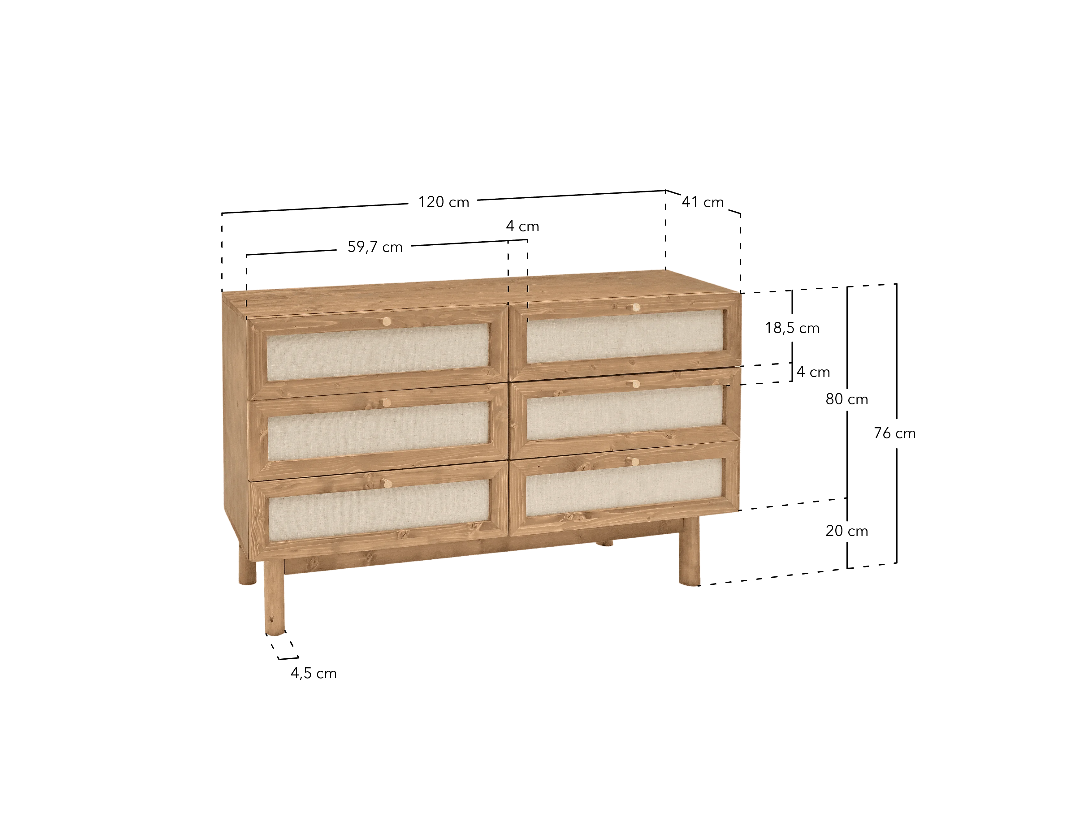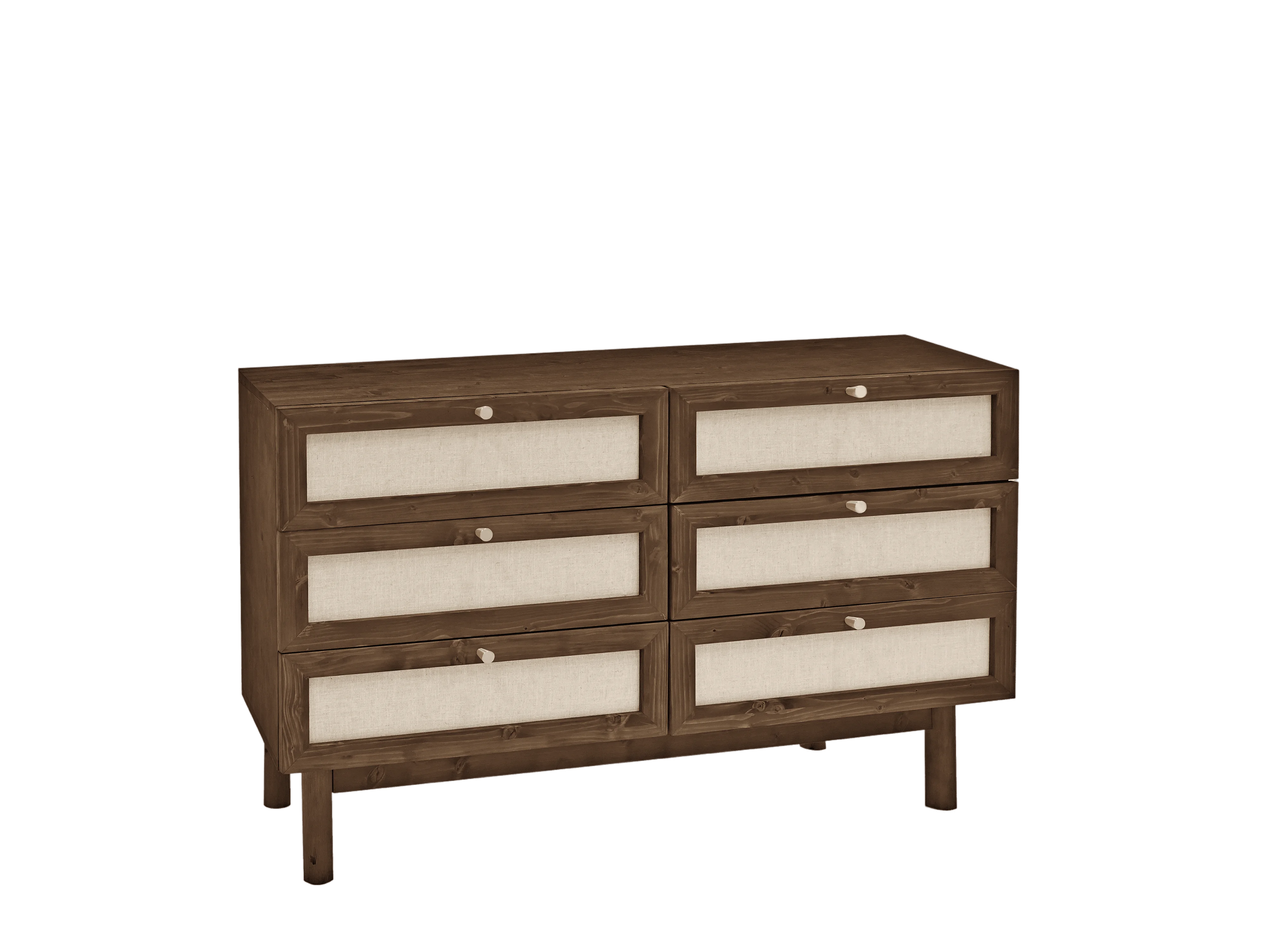 Commode en bois de sapin et lin à six tiroirs marron 76x120cm - LINEN - DECOWOOD