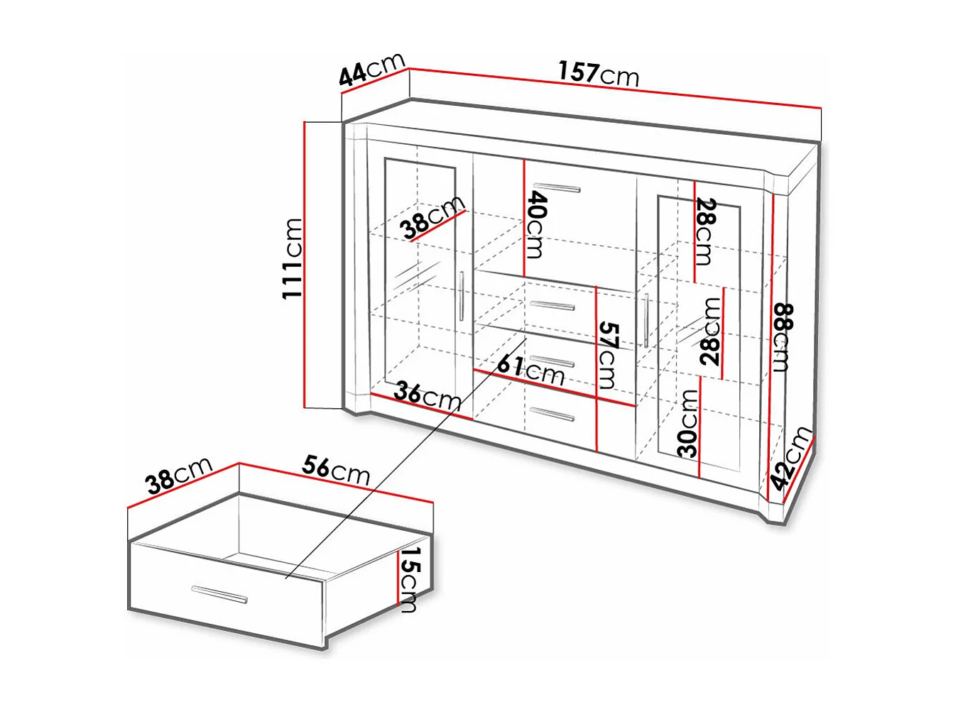 Commode Lorelie 106, Sonoma chêne, Tiroirs et portes, Nombre de tiroirs: 3, 111x157x44cm