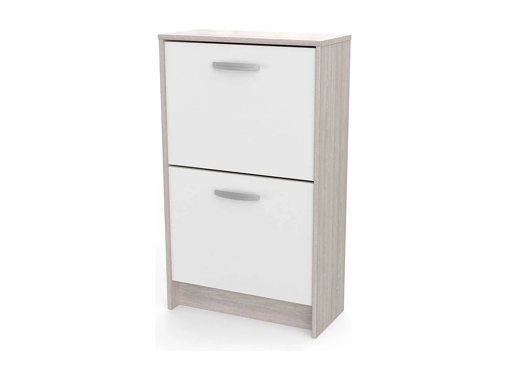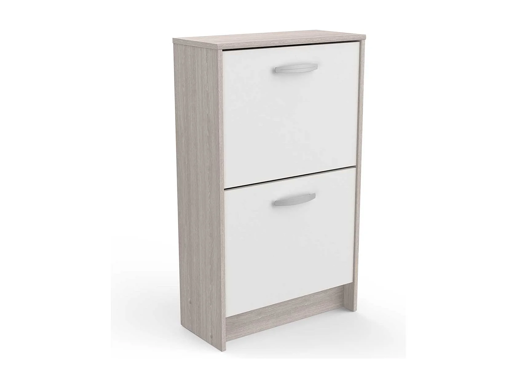 Commode meuble à chaussures 2 abattants 8 paires couleur chêne / blanc mat - Largeur 53,9 x Profondeur 24,4 x Hauteur 90,6 cm