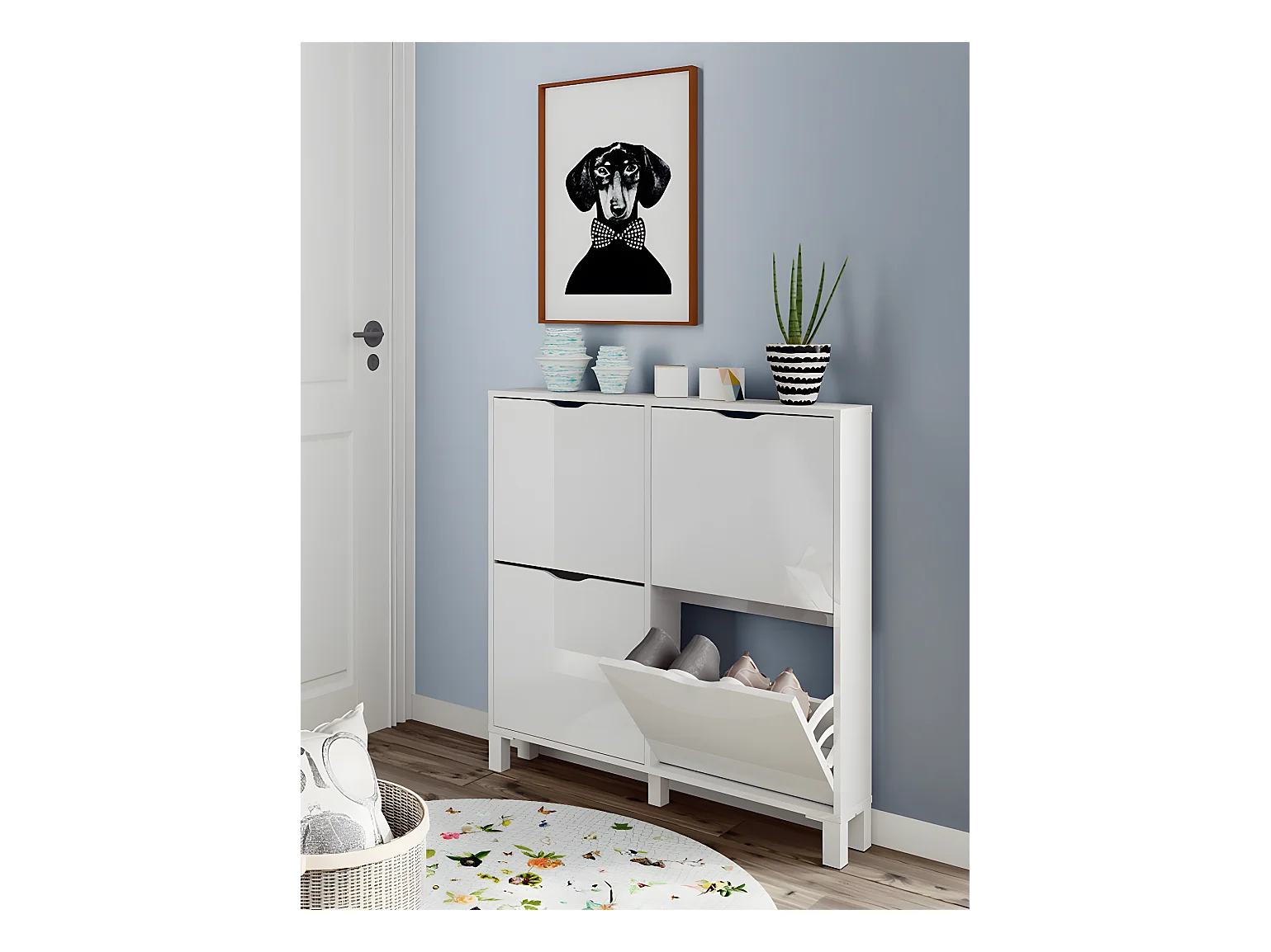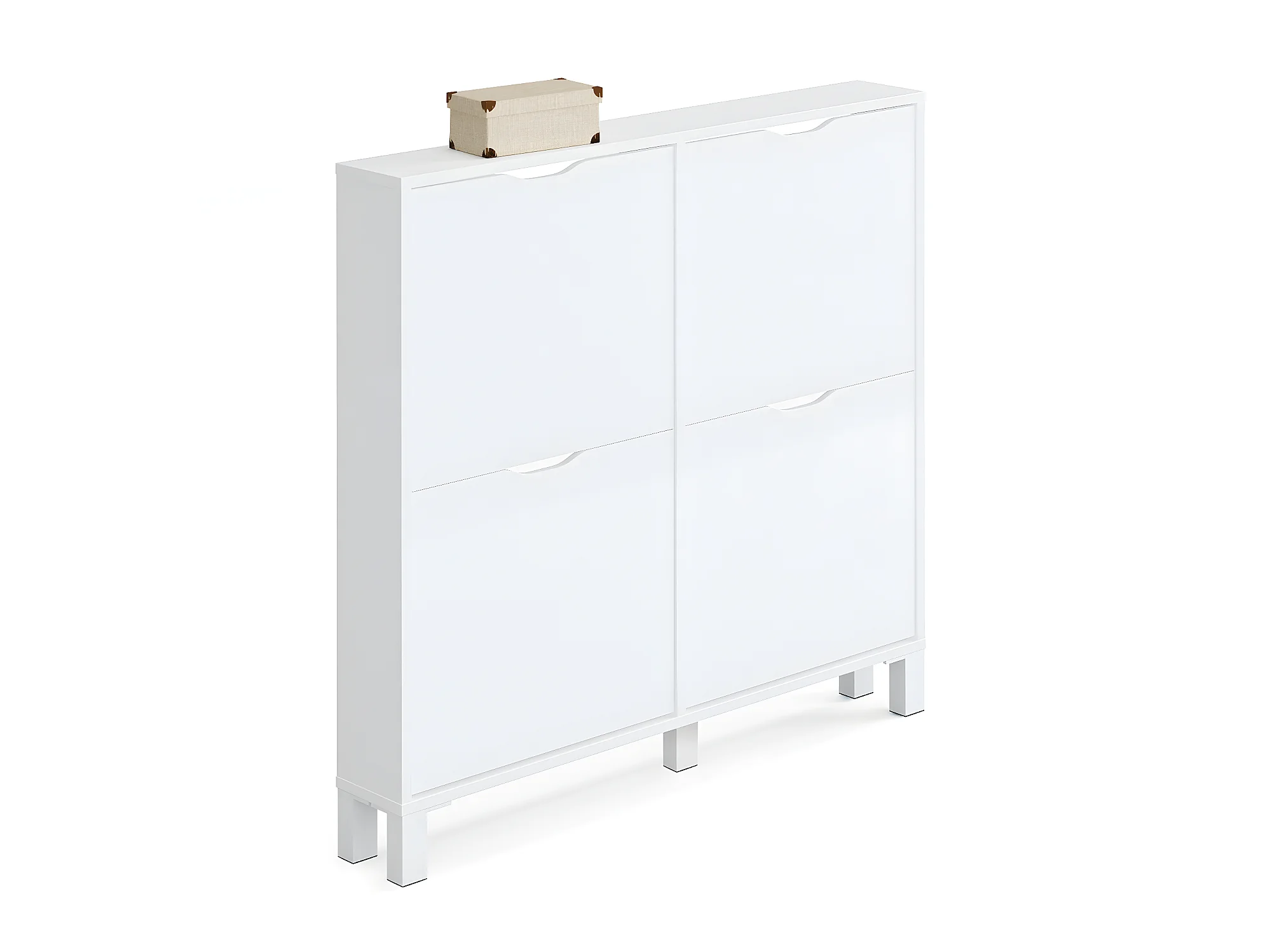 Commode Meuble à chaussures 4 portes blanc brillant - Hauteur 98 x Longueur 97 x Profondeur 17 cm