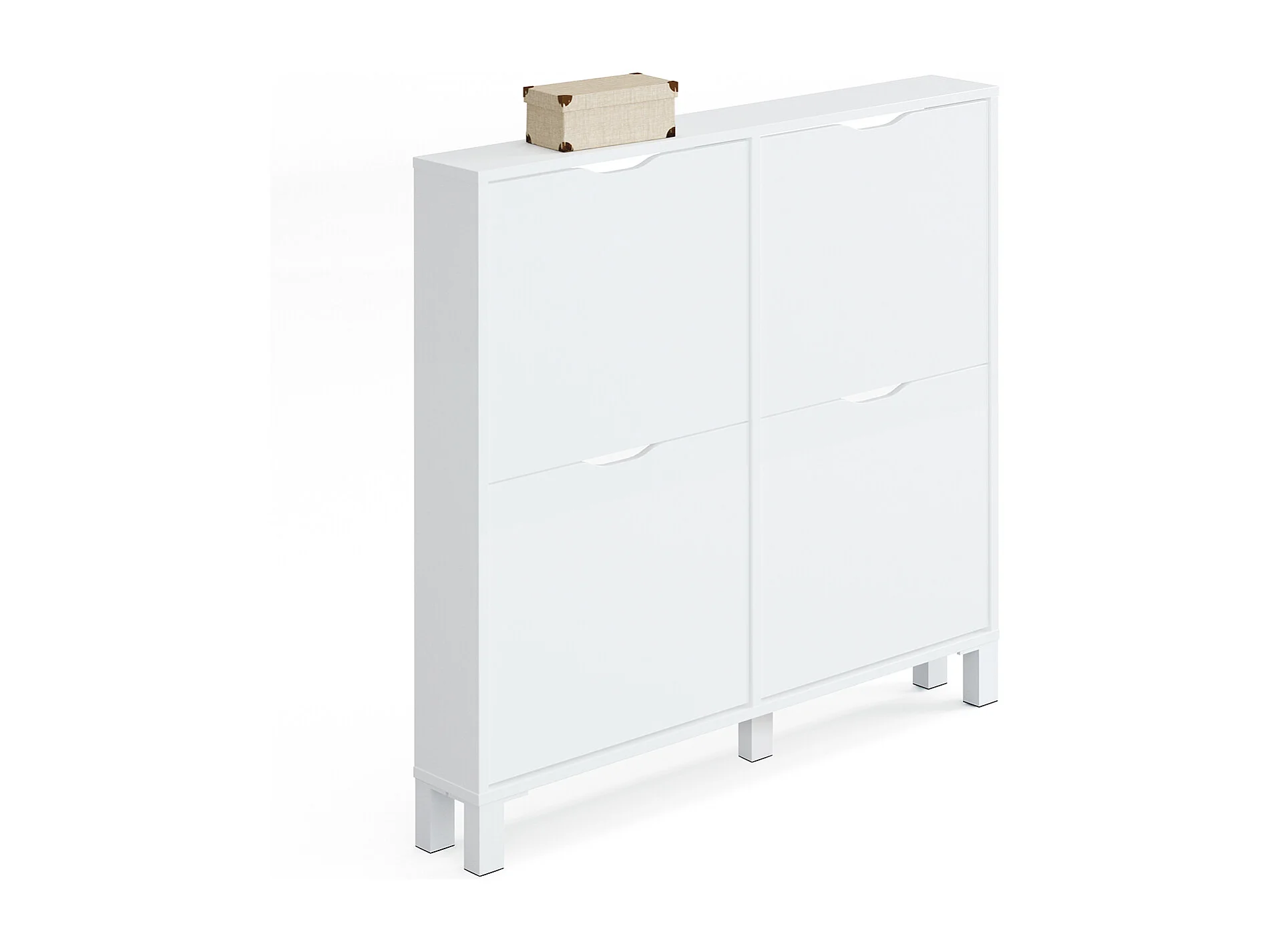Commode Meuble à chaussures avec 4 portes couleur blanc brillant - Longueur 97 x Hauteur 98 x Profondeur 17 cm