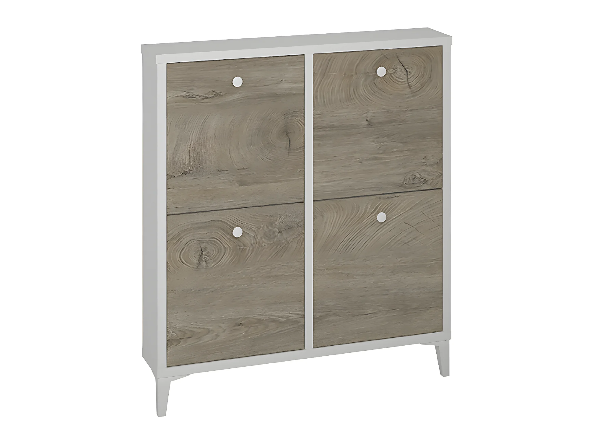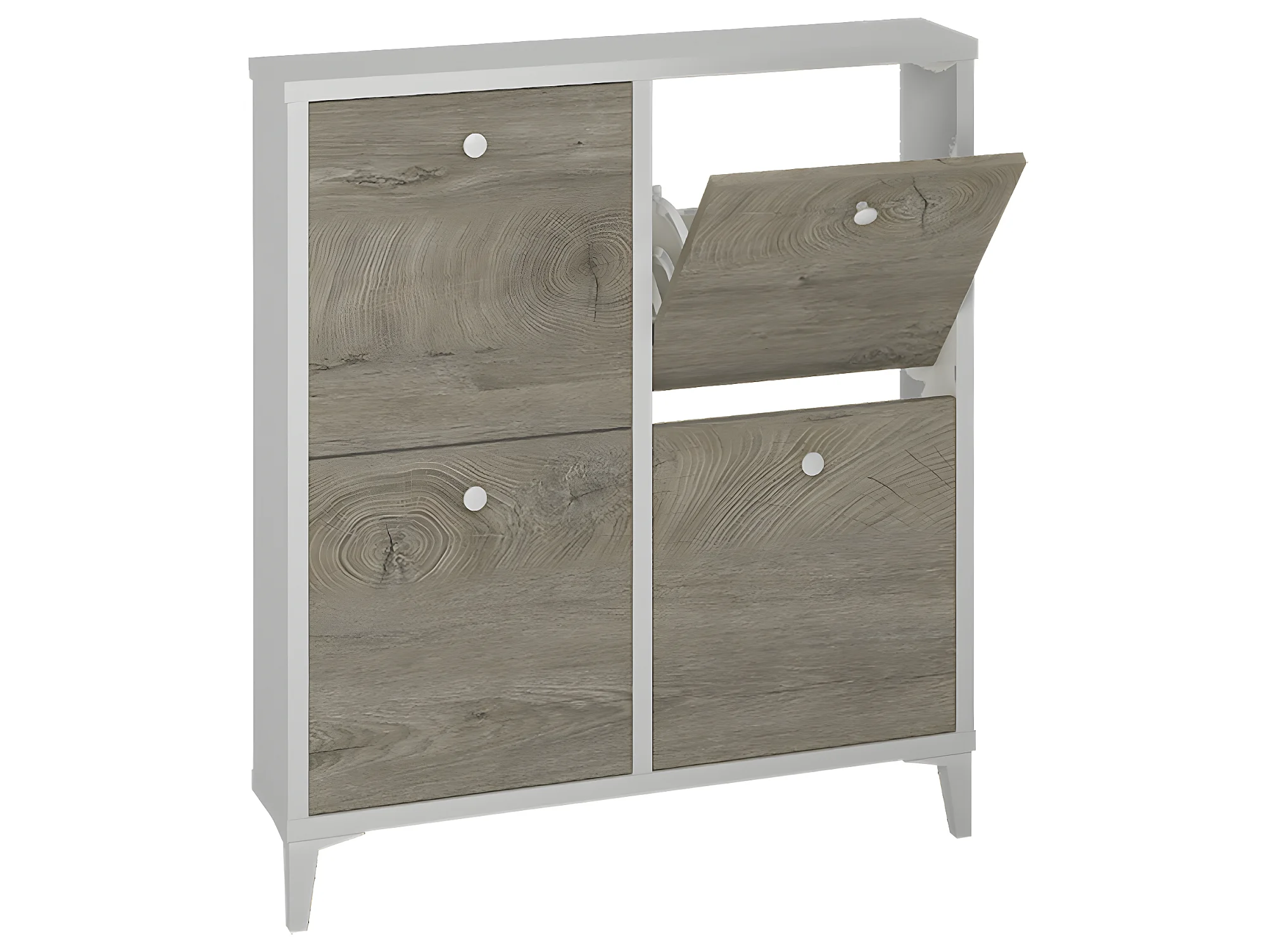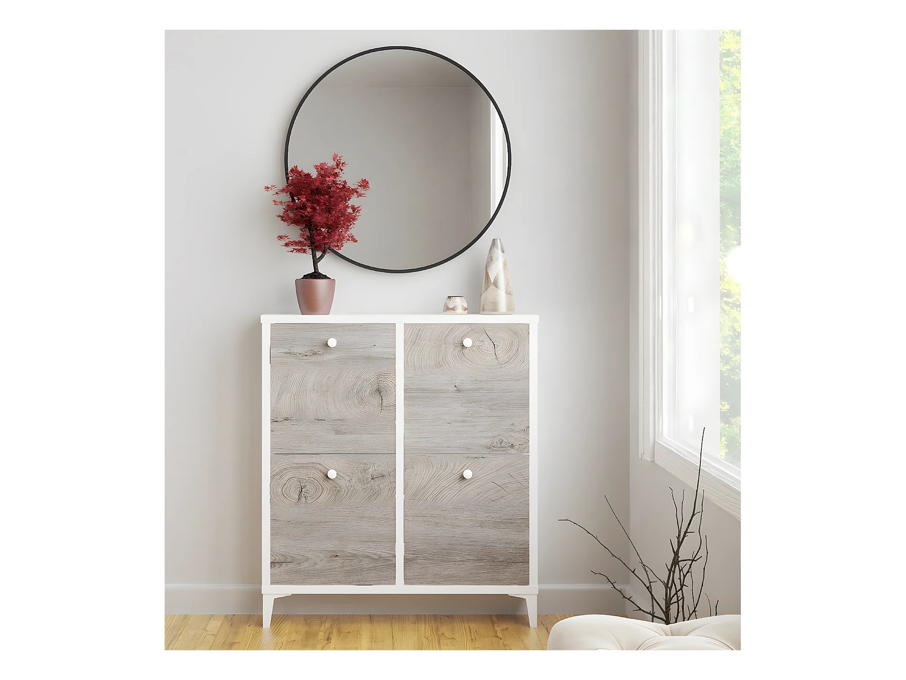 Commode Meuble à chaussures coloris chêne / blanc - Longueur 90 x Hauteur 100 x Profondeur 20 cm