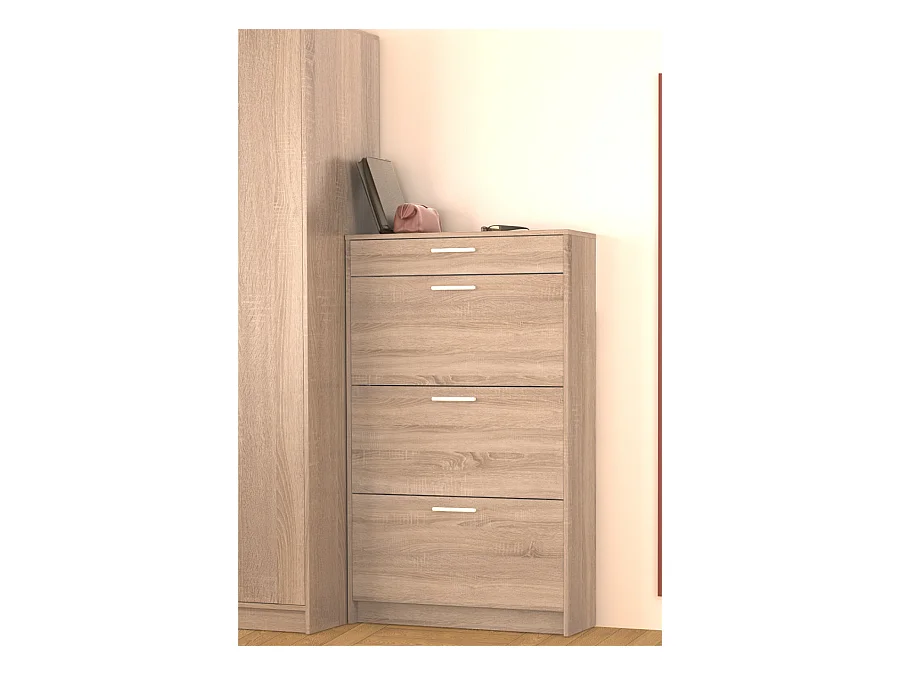 Commode meuble à chaussures coloris chêne - Longueur 75 x Profondeur 50 x Hauteur 100 cm