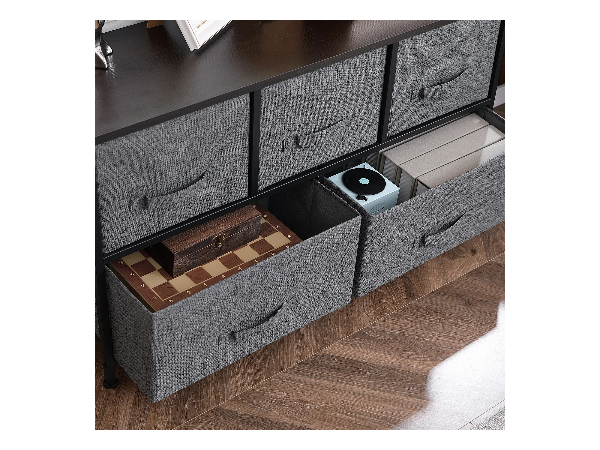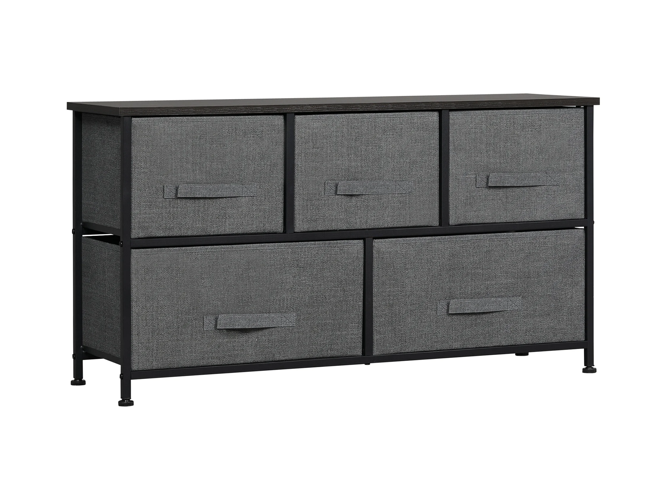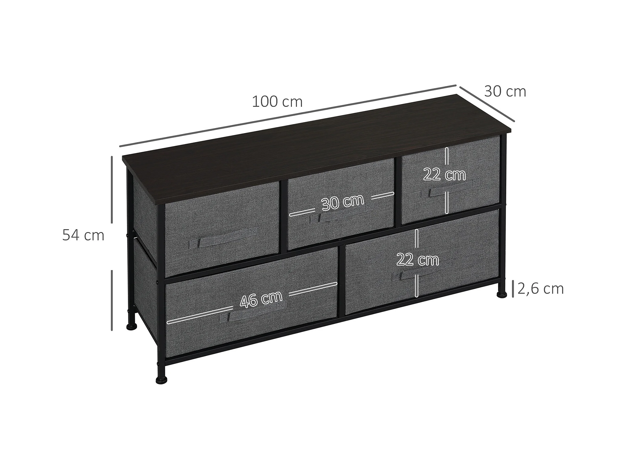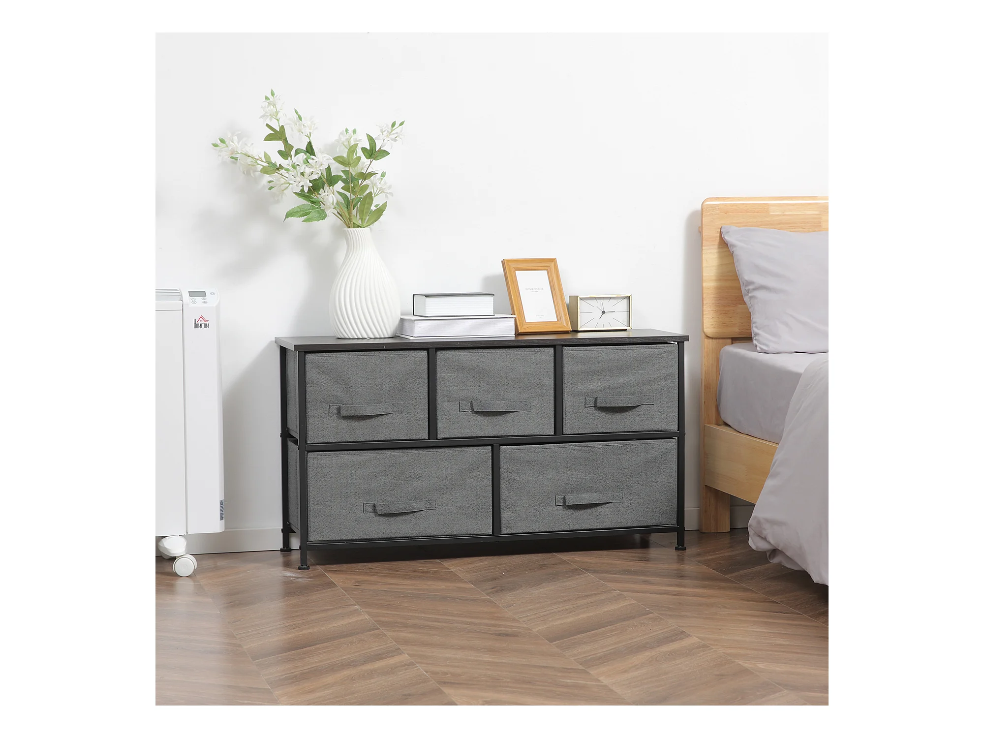 Commode meuble de rangement 5 tiroirs non-tissés anthracite structure métal noir plateau MDF aspect bois