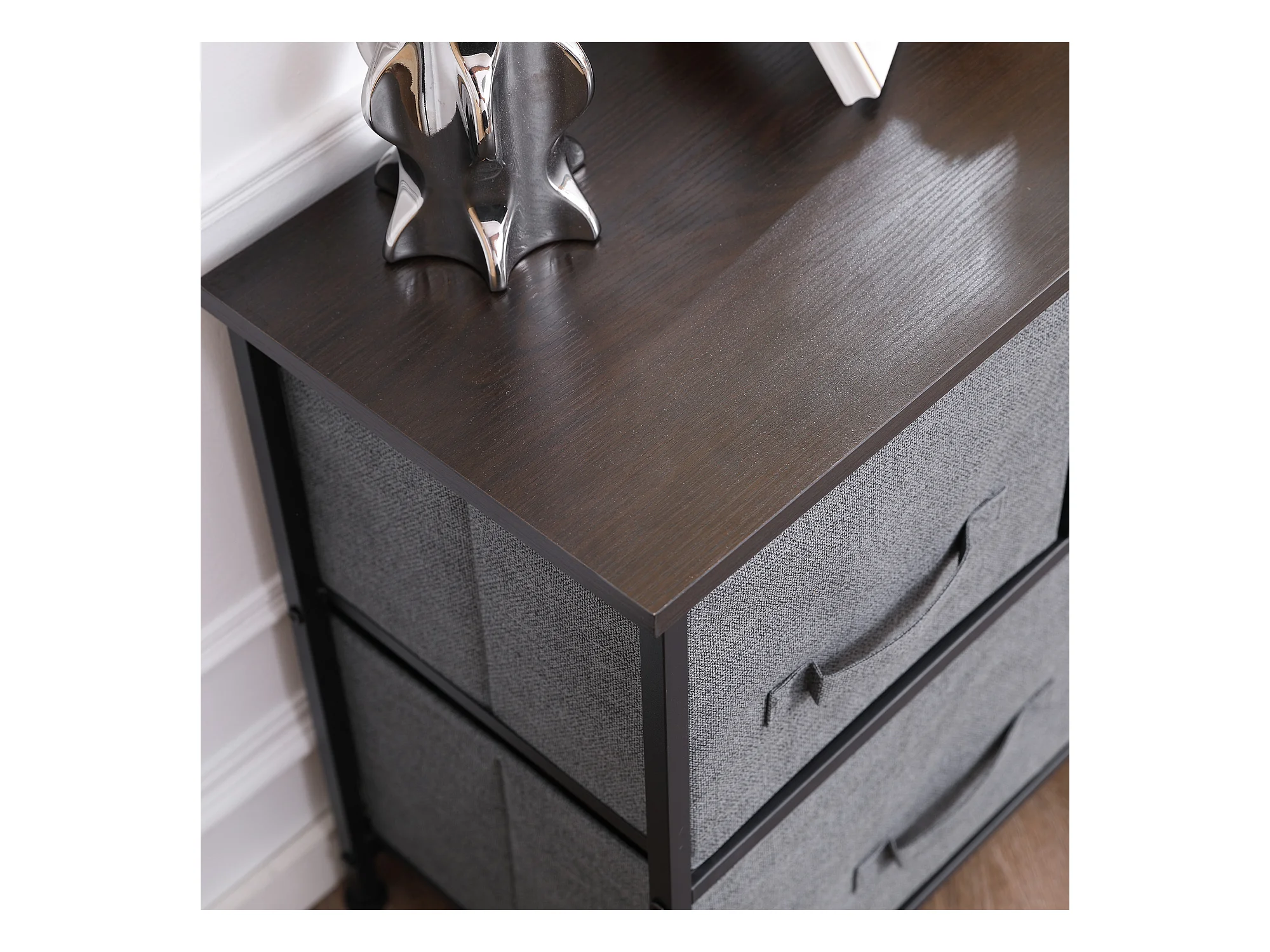 Commode Grise 2 Tiroirs avec Poignées Bois - Stige