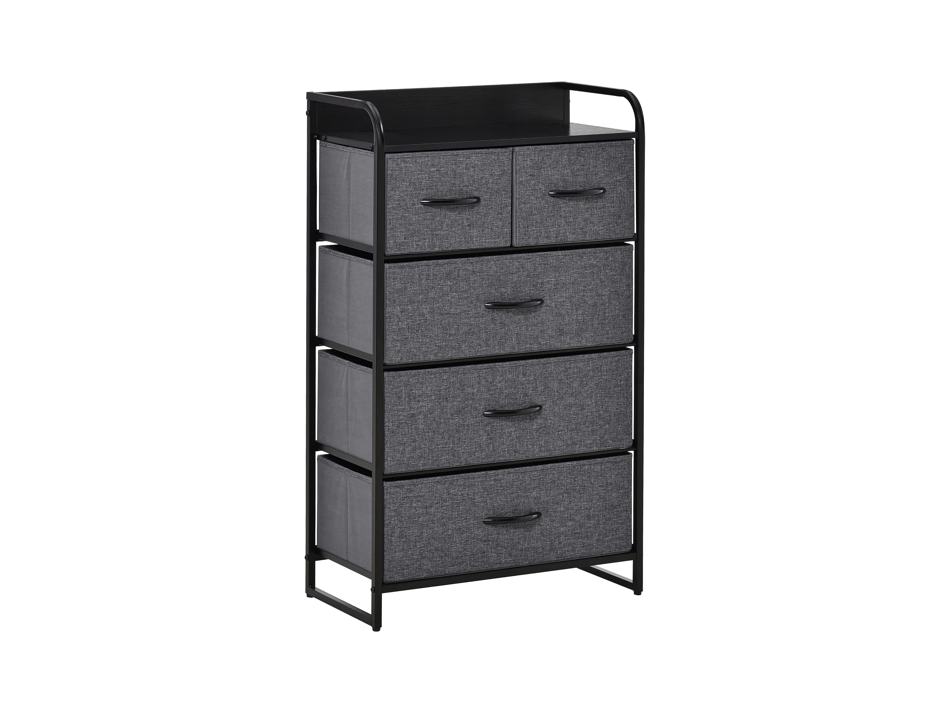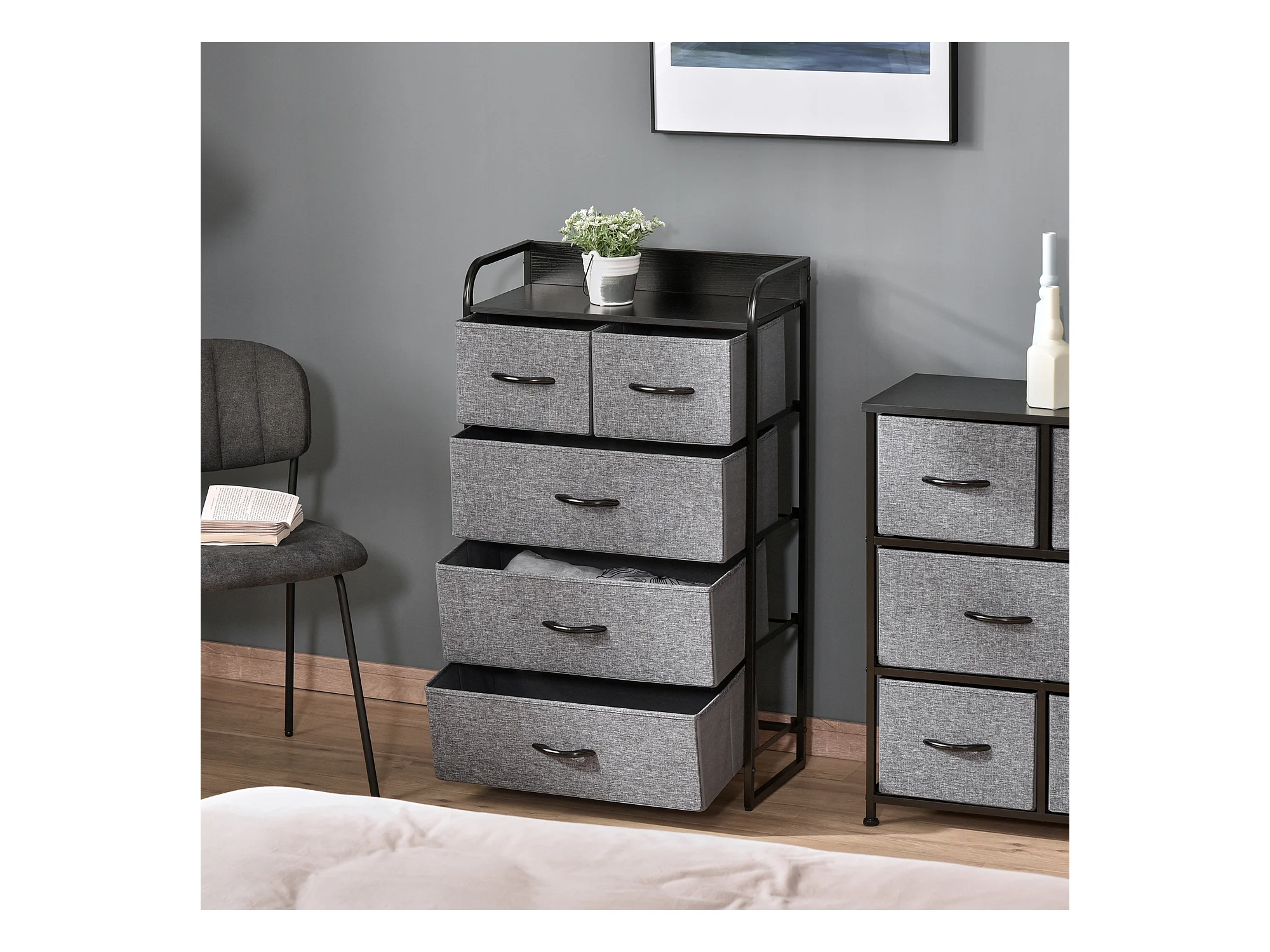 Commode meuble de rangement 5 tiroirs pliables en tissu 58 x 29 x 99 cm gris