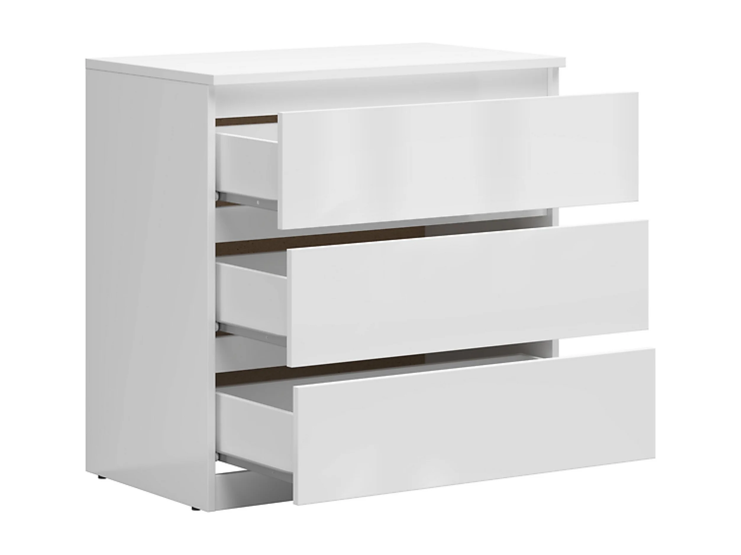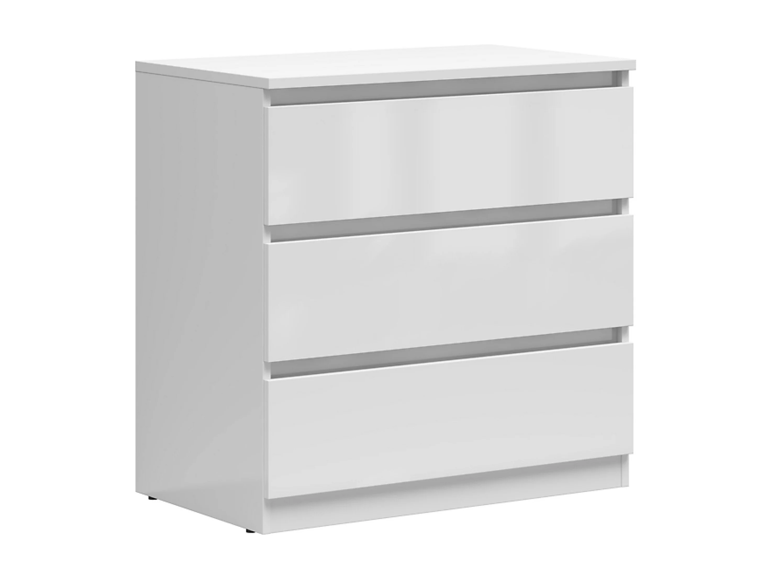 Commode meuble de rangement à 3 tiroirs coloris Blanc brillant - Longueur 75 x Profondeur 45 x Hauteur 75,5 cm